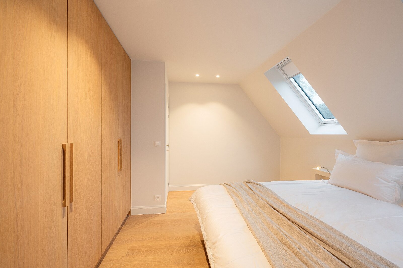Ruime en elegante villa met zuidgerichte tuin te koop in een rustige, groene buurt van Knokke. De woning is volledig gerenoveerd met hoogwaardige afwerking, royale ruimtes en veel natuurlijk licht.