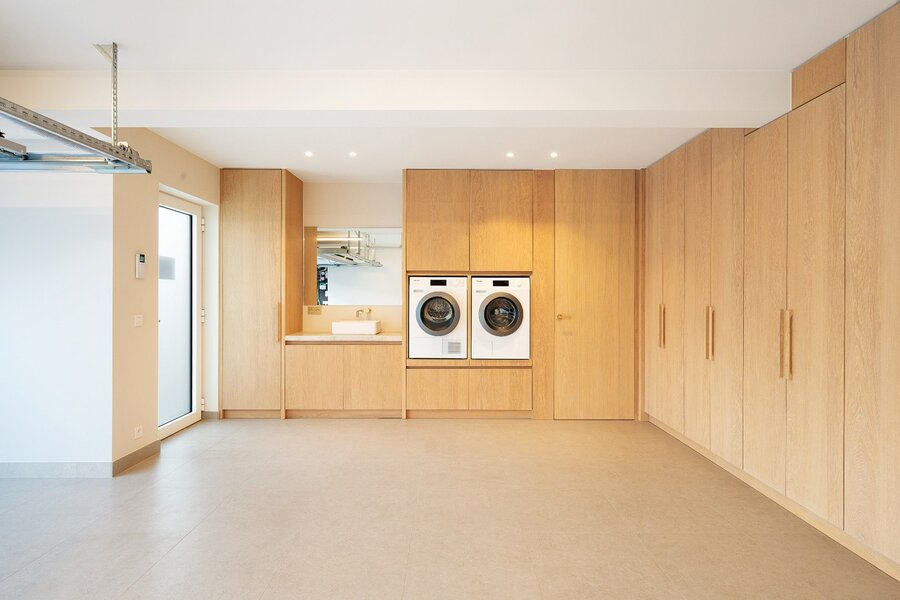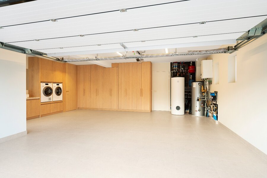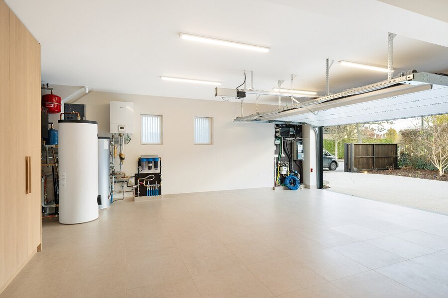 De verzorgde tuin is onderhoudsvriendelijk en voorzien van buitenverlichting en automatisch irrigatiesysteem. De villa beschikt over een grote garage met ingebouwde kasten en veel opbergruimte, een praktische wasruimte en moderne technische voorzieningen zoals vloerverwarming, warmtepomp, airconditioning, alarmsysteem en elektrische poort.