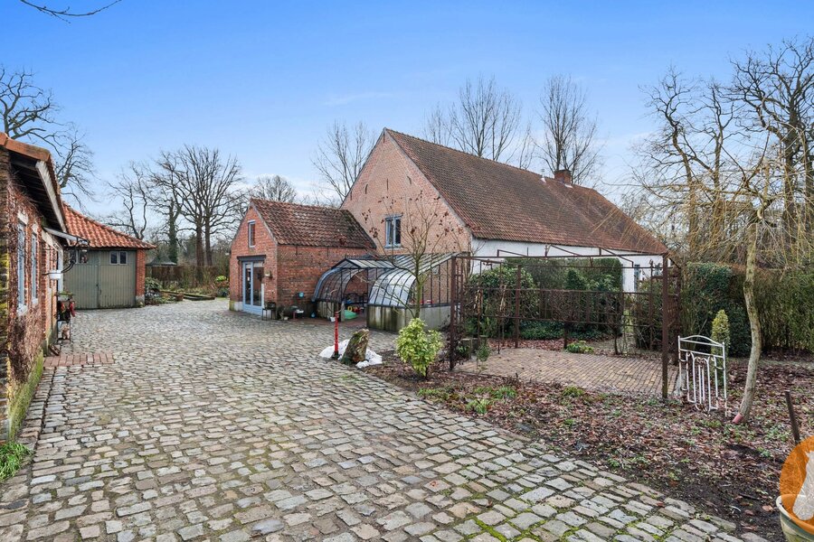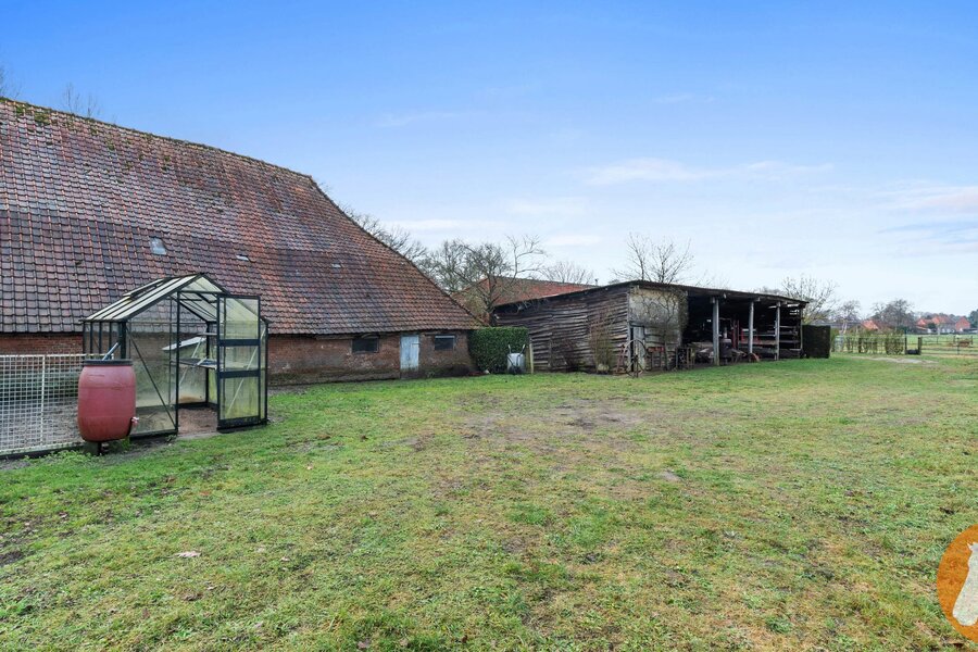 Het pand omvat een historisch woonhuis met annex klassieke Kempische schuur en een traditioneel erf, ideaal voor wie houdt van authenticiteit, rust én ruimte.