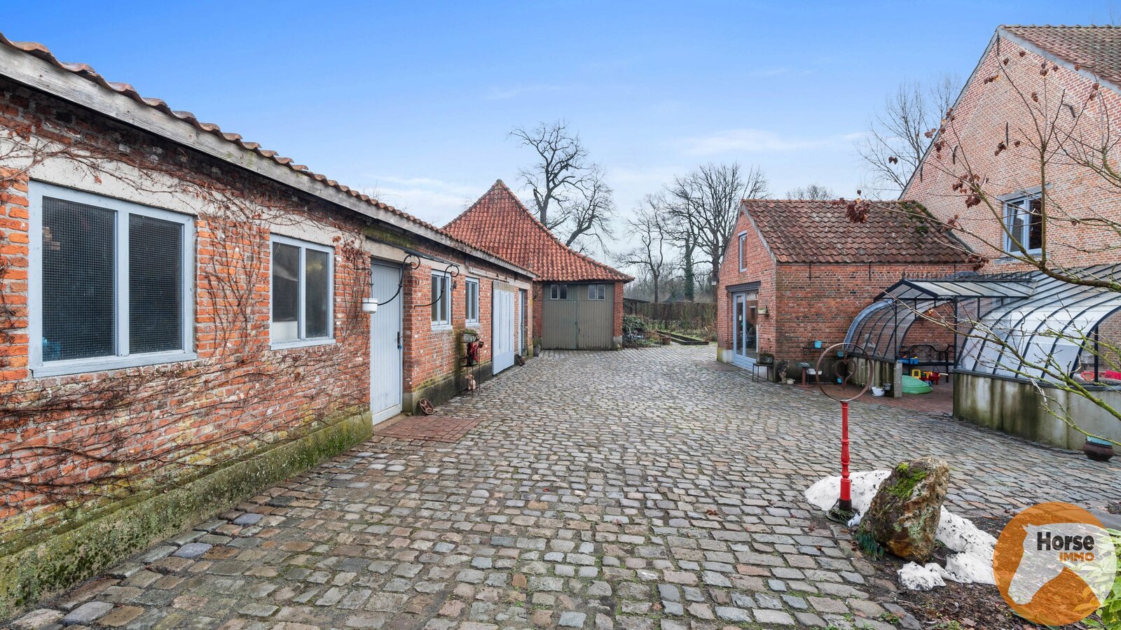 - Bijgebouwen kunnen omgevormd worden tot paardenstallen.