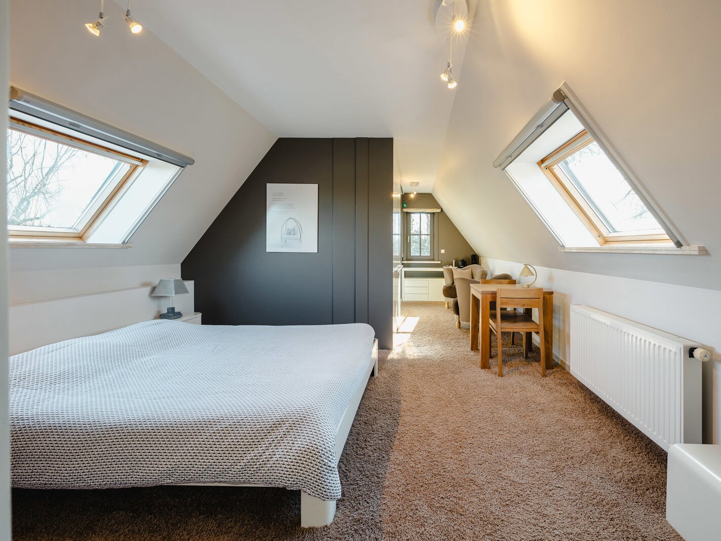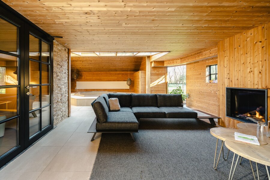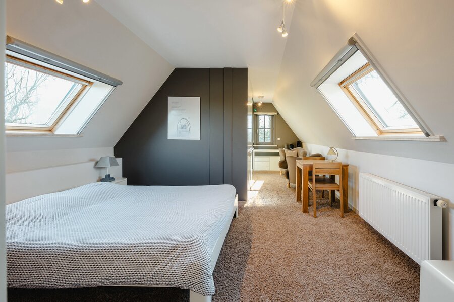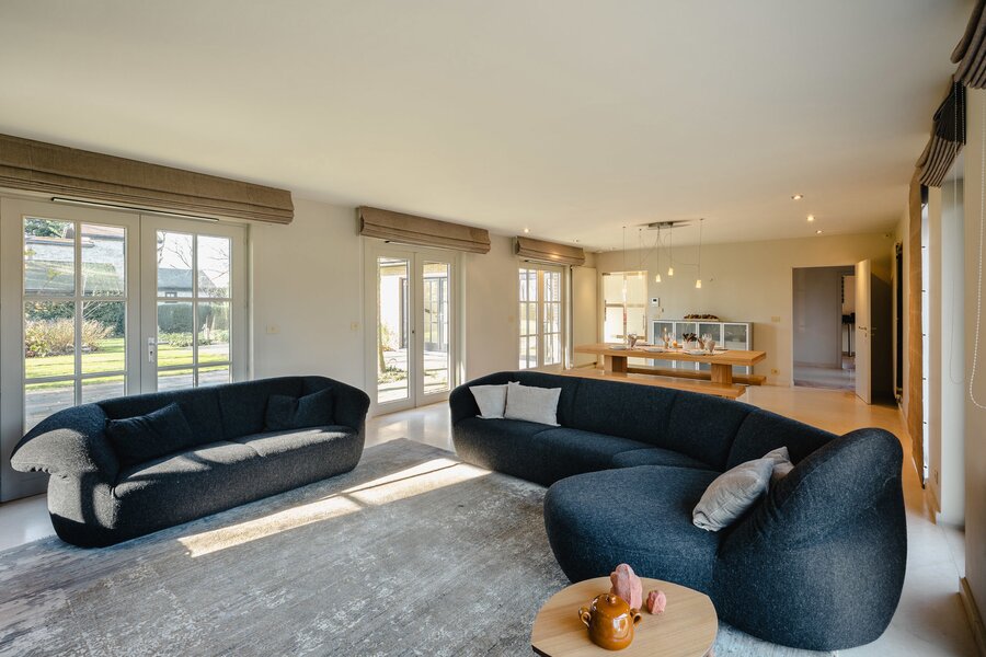 De lichtrijke villa biedt een royale leefruimte met haard, een volledig uitgeruste keuken en bijkeuken. Aansluitend een polyvalente ruimte, momenteel ingericht als ontbijtkamer voor de B&B. Op het gelijkvloers bevinden zich twee slaapkamers en een badkamer. De eerste verdieping biedt twee ruime slaapkamers, elk met eigen dressing en ensuite badkamer. De wellness beschikt over hamam, sauna, jacuzzi, inloopdouche, zithoeken met gashaard en buitendouche. De prachtige tuin biedt talloze plekken om in alle rust te genieten van de zon en de natuur. De woning kan ook uitgebaat worden als B&B.