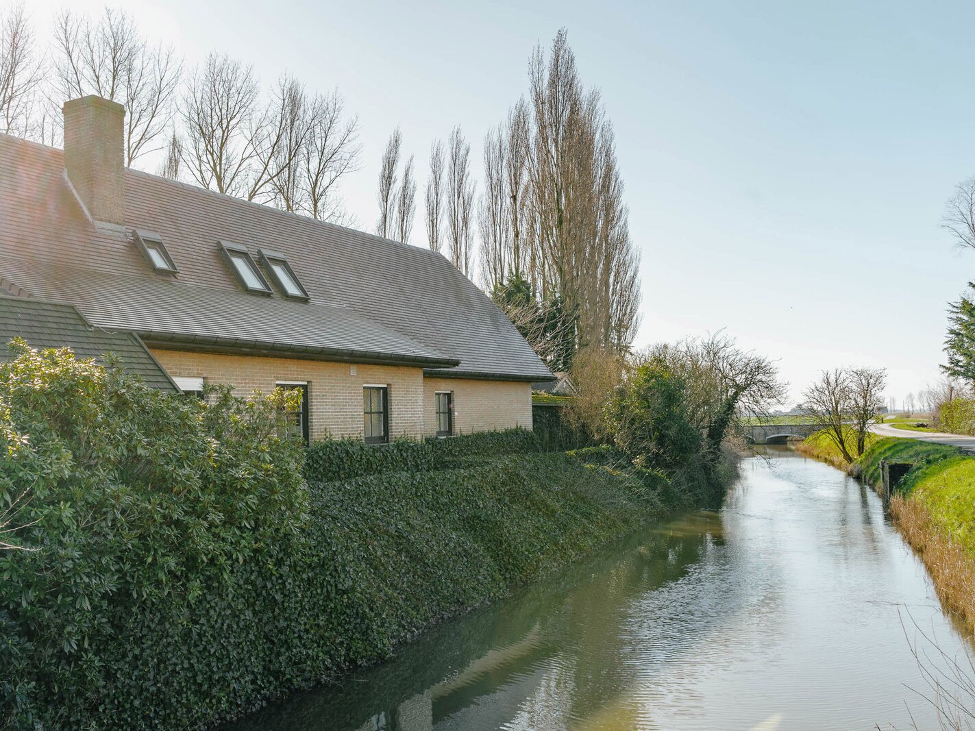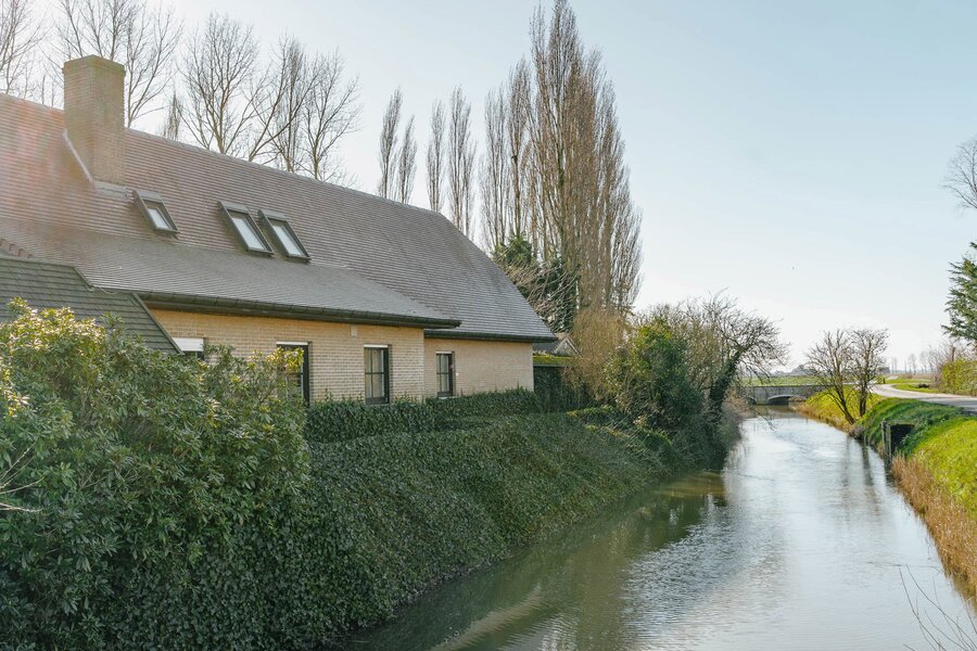 Aan de oevers van de Grote Beverdijkvaart in Diksmuide ligt dit uitzonderlijke domein van ca. 2 hectare. Het geheel omvat een villa van ca. 328 m², een luxueuze wellnessruimte, twee aparte paardenweiden met schuilhokken en stallen, evenals een boothuis met eigen aanlegsteiger. De toegang tot het domein verloopt via een privébrug.
