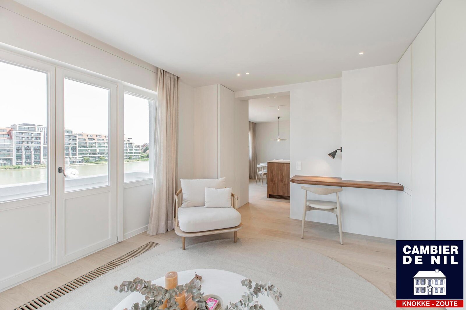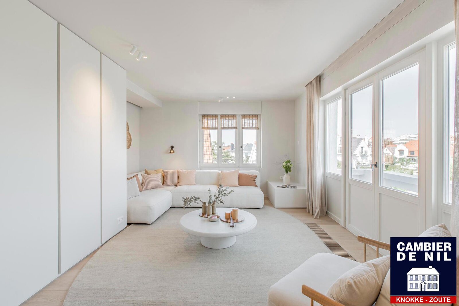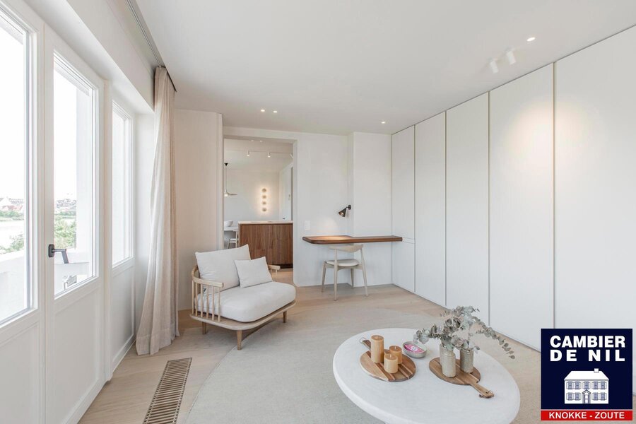Absolute top renovatie van een ruim appartement met frontaal zicht op het zegemeer. Gelegen in een charmante villa residentie, op enkele stappen van het centrum, zee en het prestigieuze casino. Indeling als volgt; Inkomhal met vestiaire en apart gastentoilet. Open en volledig geïnstalleerde open keuken (apparatuur Miele) met gezellige eethoek en aansluitende leefruimte met terras. Al deze ruimtes hebben indrukwekkende zichten op het zegemeer. Aparte praktische keuken/wasruimte. Master bedroom met eigen badkamer en terras. Ruime slaapkamer 2 & 3 met ingemaakte kasten en gedeelde smaakvolle badkamer. Op de zolderverdieping kan u de volledige ingerichte 4de slaapkamer met wastafel terugvinden. Mogelijkheid aankoop van makkelijk te bereiken garagebox met grote opslagplaats in residentie. Uniek aanbod op exclusieve locatie, contacteer Cambier De Nil voor meer informatie.