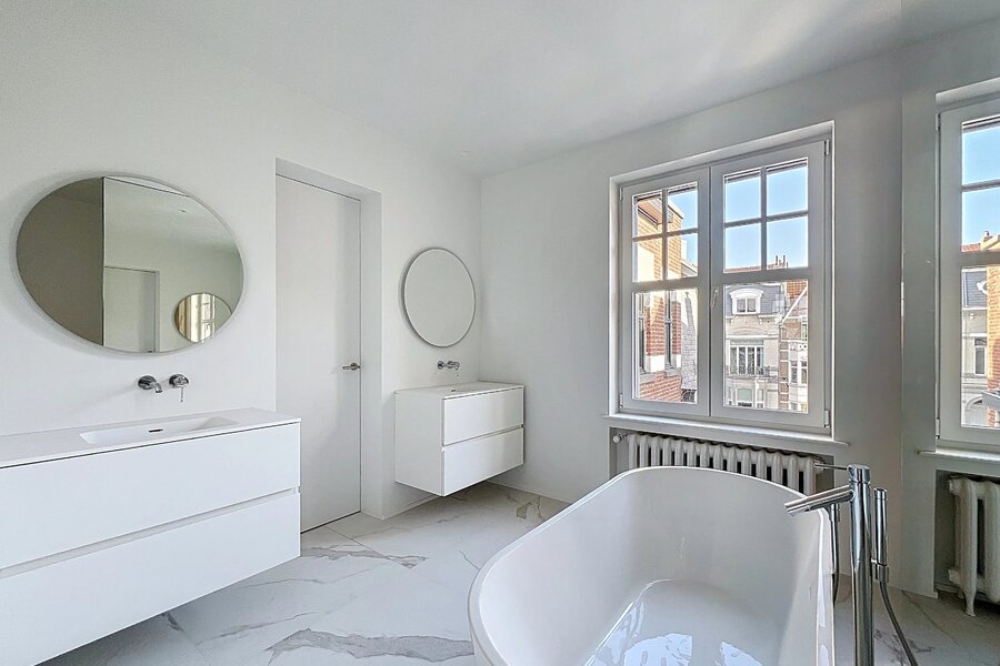 In de gewilde Floride-wijk van Ukkel biedt Barnes Brussels u dit sublieme, lichte duplex penthouse aan, gerenoveerd door architect Renaud Dejeneffe, bestaande uit drie prachtige suites, waaronder de hoofdslaapkamer met dressing, drie badkamers, een grote, lichte woonkamer met open haard, een volledig uitgeruste Amerikaanse keuken en een prachtig terras op het zuiden met een ononderbroken uitzicht over het groen.
