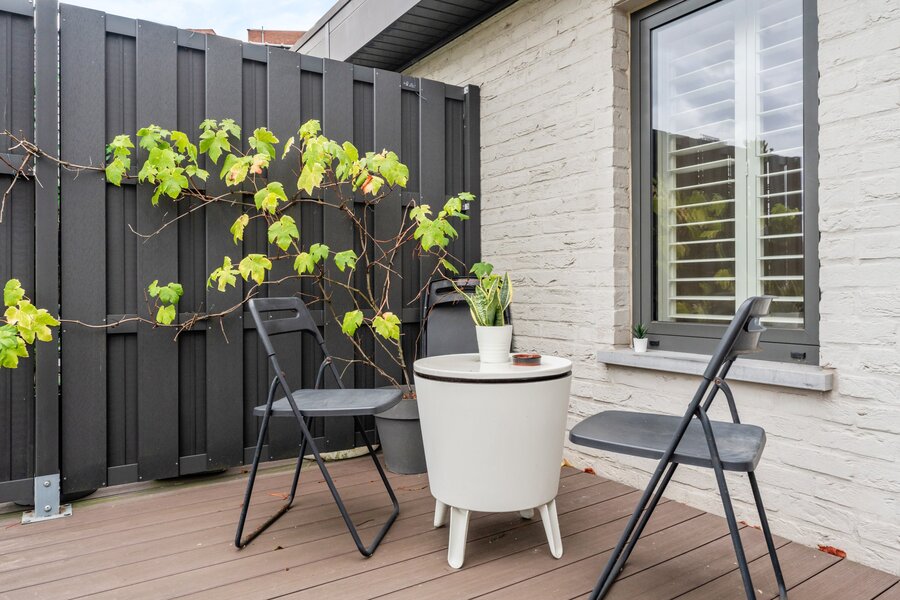 Op de tweede verdieping vindt u twee volwaardige slaapkamers, elk met een eigen badkamer. De achterste kamer beschikt bovendien over een privéterras.