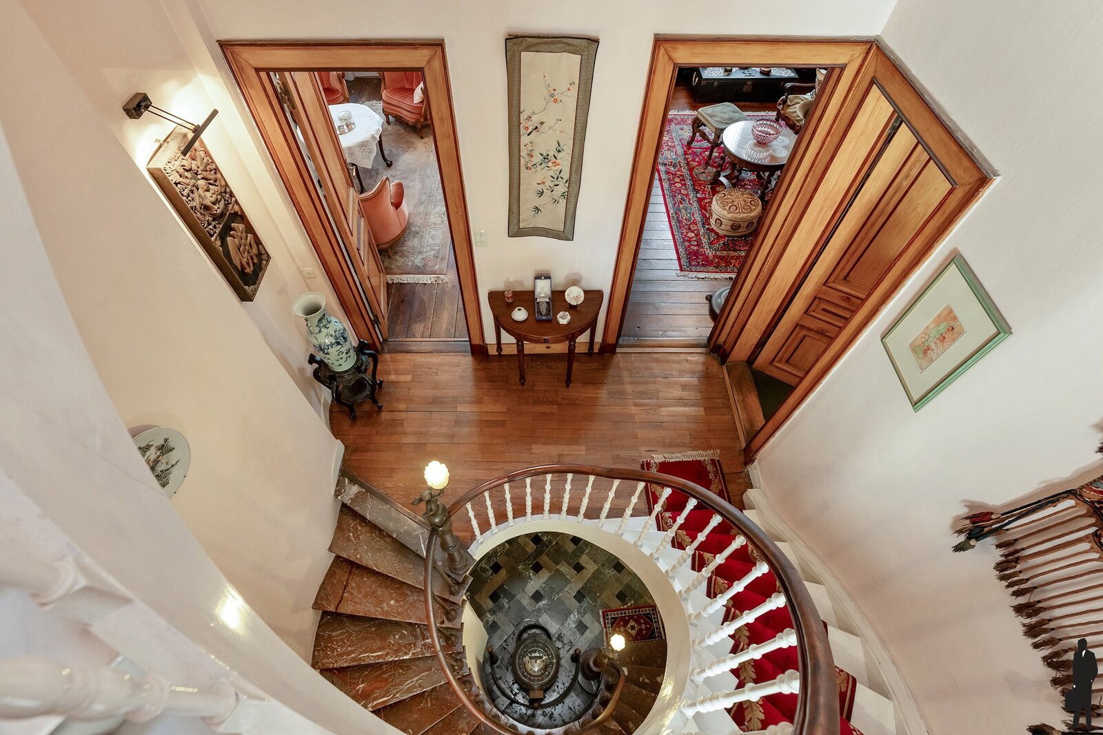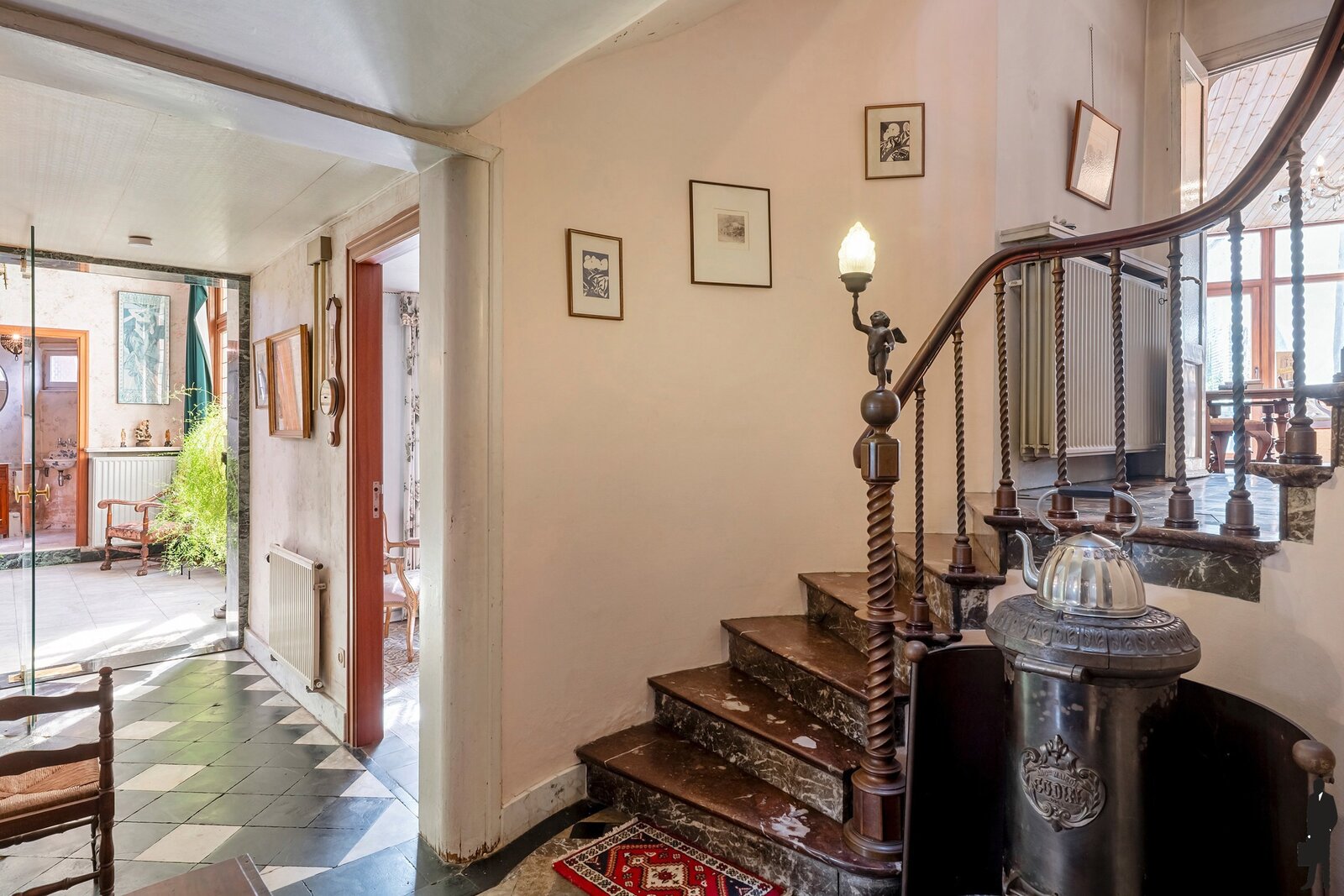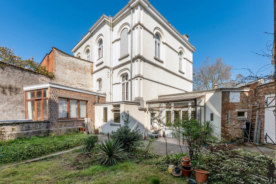 Bij binnenkomst in deze statige woning wordt u meteen verwelkomd door authentieke elementen zoals rijk versierde hoge plafonds, eiken parketvloeren en indrukwekkende schouwen. De royale inkomhal met gastentoilet geeft directe toegang tot de zonnige stadstuin. Vanuit de majestueuze trappenhal bereikt u de keuken met aansluitende eetkamer, de bureau achteraan en een extra zitruimte.