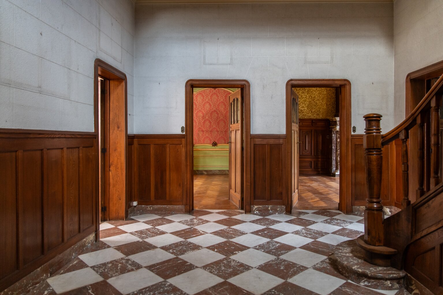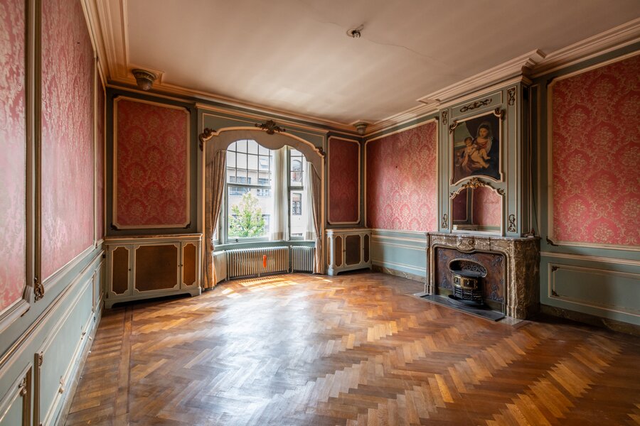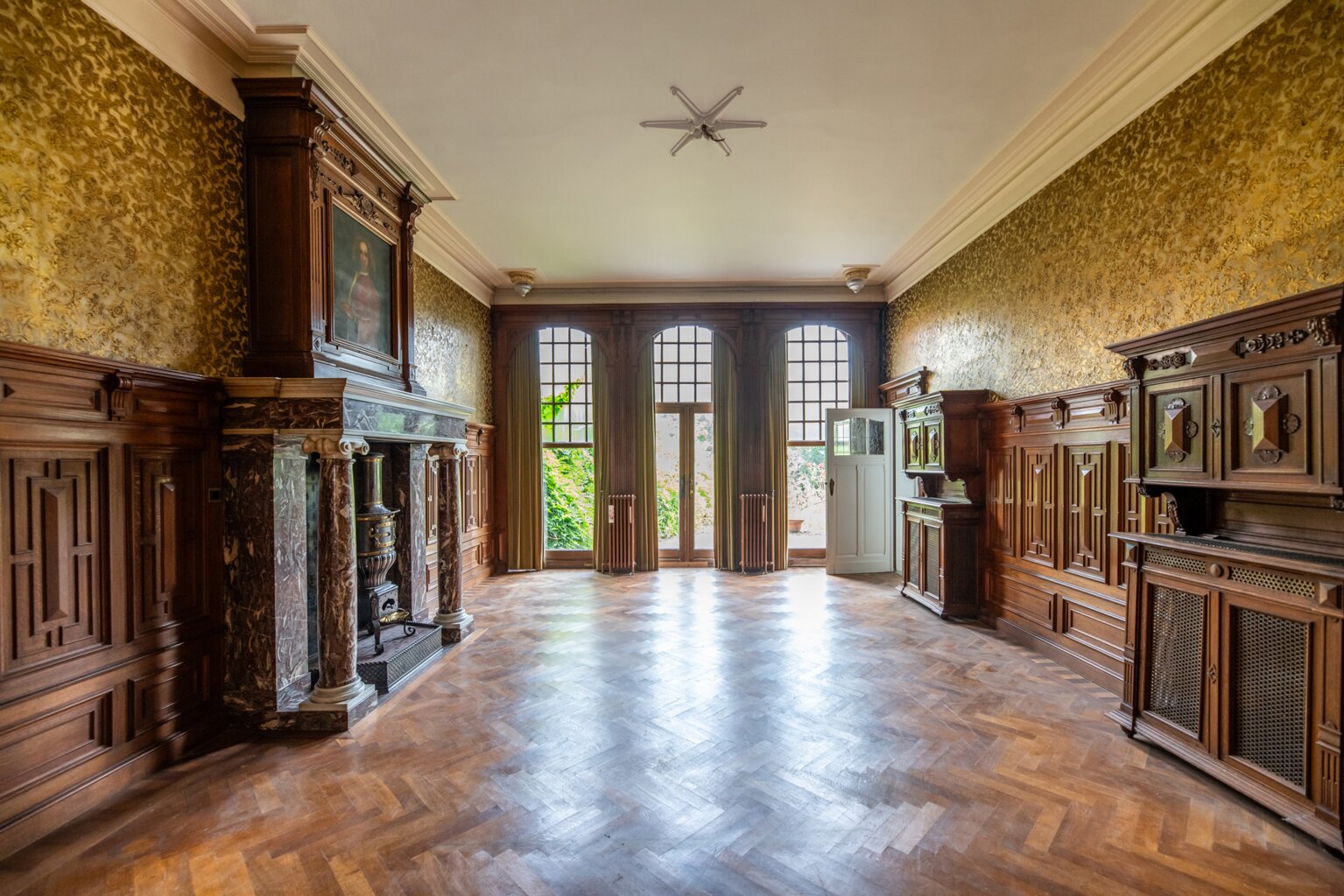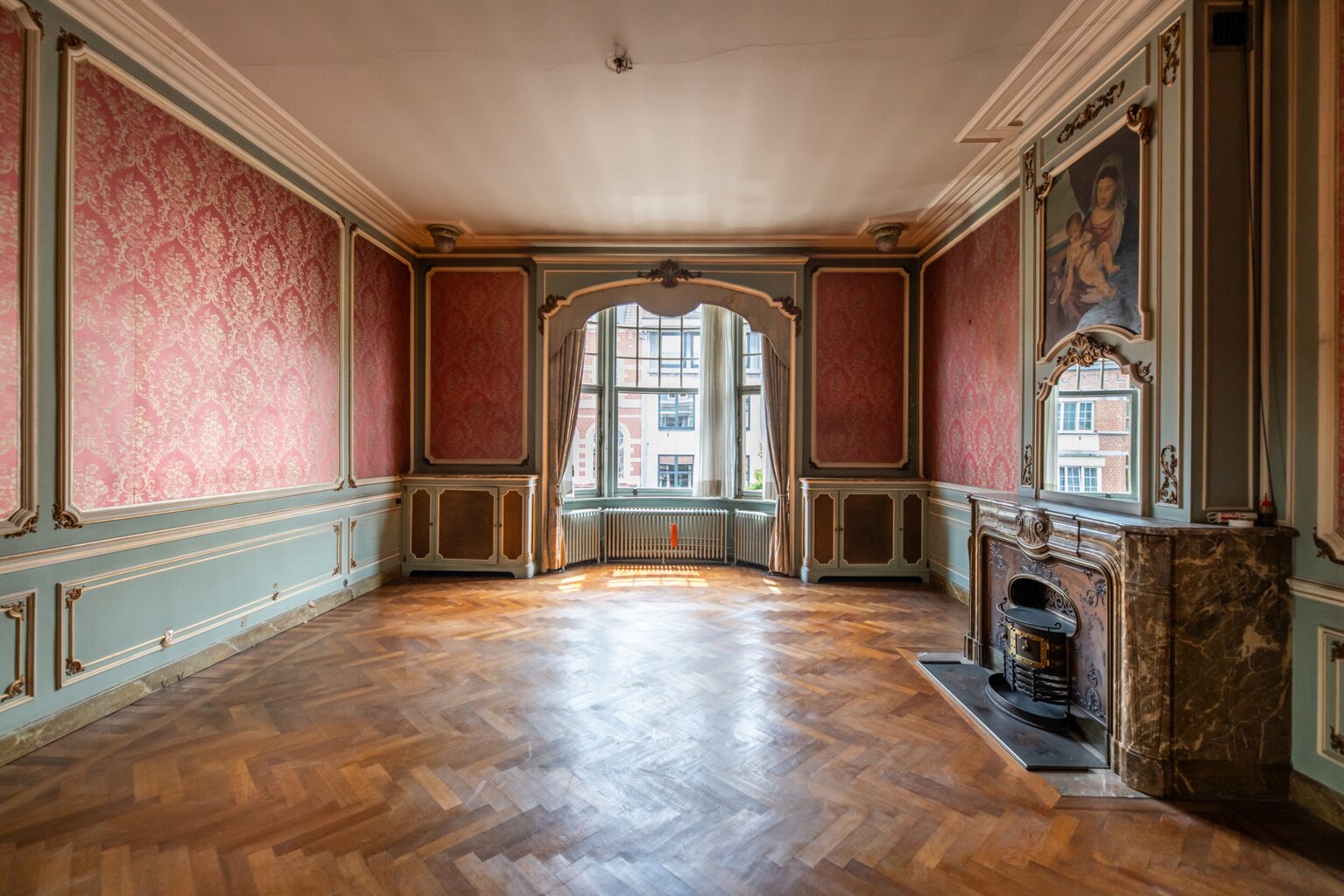 Achter de voorgevel van 18 meter breed schuilt een volledig onderkelderd pand met een enorme grandeur. De statige inkom, afgewerkt met rode marmer, zet meteen de toon. De prachtige deur in glas-in-lood brengt ons naar de impressionante hal met originele houten trap. Gelijkvloers met vijf grote kamers, waarvan twee riant, met bladgoud, muurschilderingen, ornamenten, sierhaard en visgraatparket. Dankzij het volume en de vele grote raampartijen baden alle ruimtes in het licht. De verbluffende tuin van maar liefst ca. 2420 m² lijkt uit een sprookje te komen: een oase van rust, vijver inbegrepen.