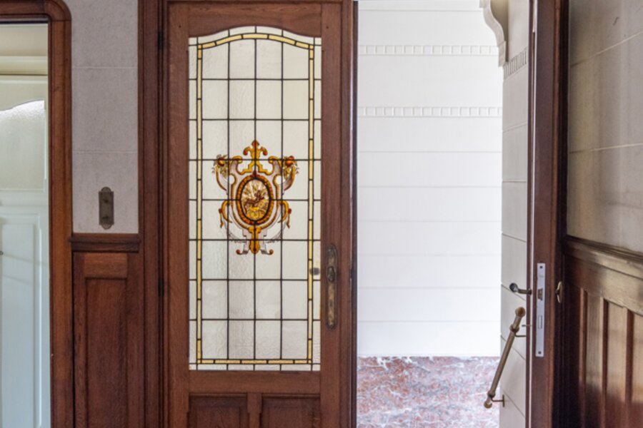 Nadat delen van dit eclectische burgerhuis met art-deco-elementen werd verwoest tijdens WOI, besloot notaris Walrave het in 1921 te verbouwen. Deze statige woning zit tot de nok vol geschiedenis – zoveel is duidelijk.
