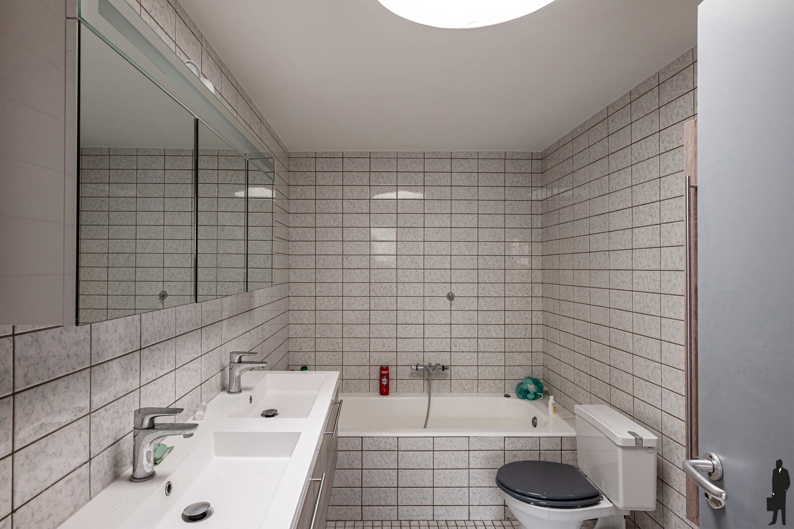 - Een badkamer voorzien van ligbad, toilet en wastafel.