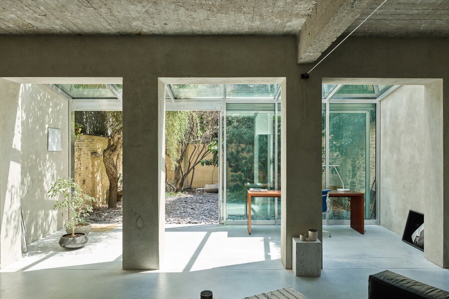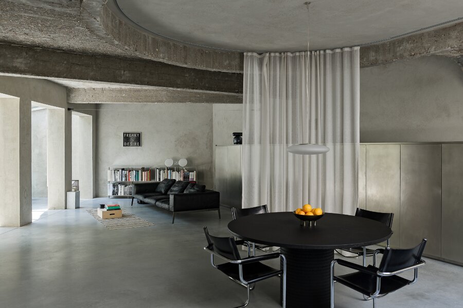 Een oude wasserij uit de jaren zestig die volledig werd gestript tot op de ruwe beton en vervolgens heropgebouwd als een open leefsculptuur.