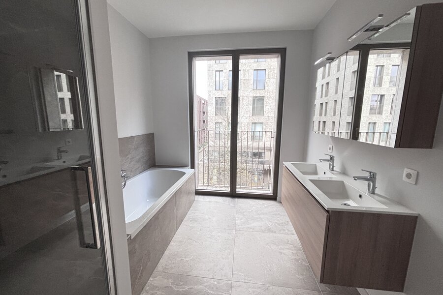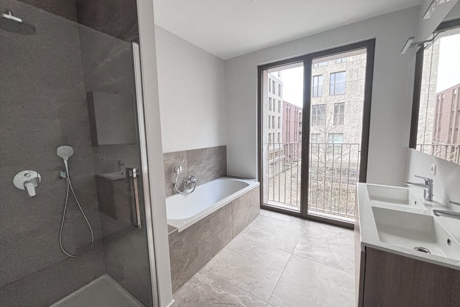 Zeer recent appartement met 2 slaapkamers, ruim terras en autostandplaats in Quartier Bleu in centrum Hasselt.