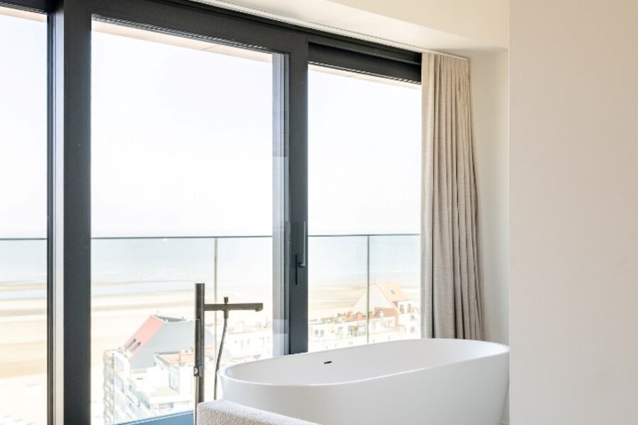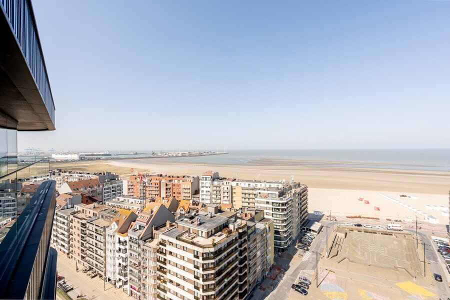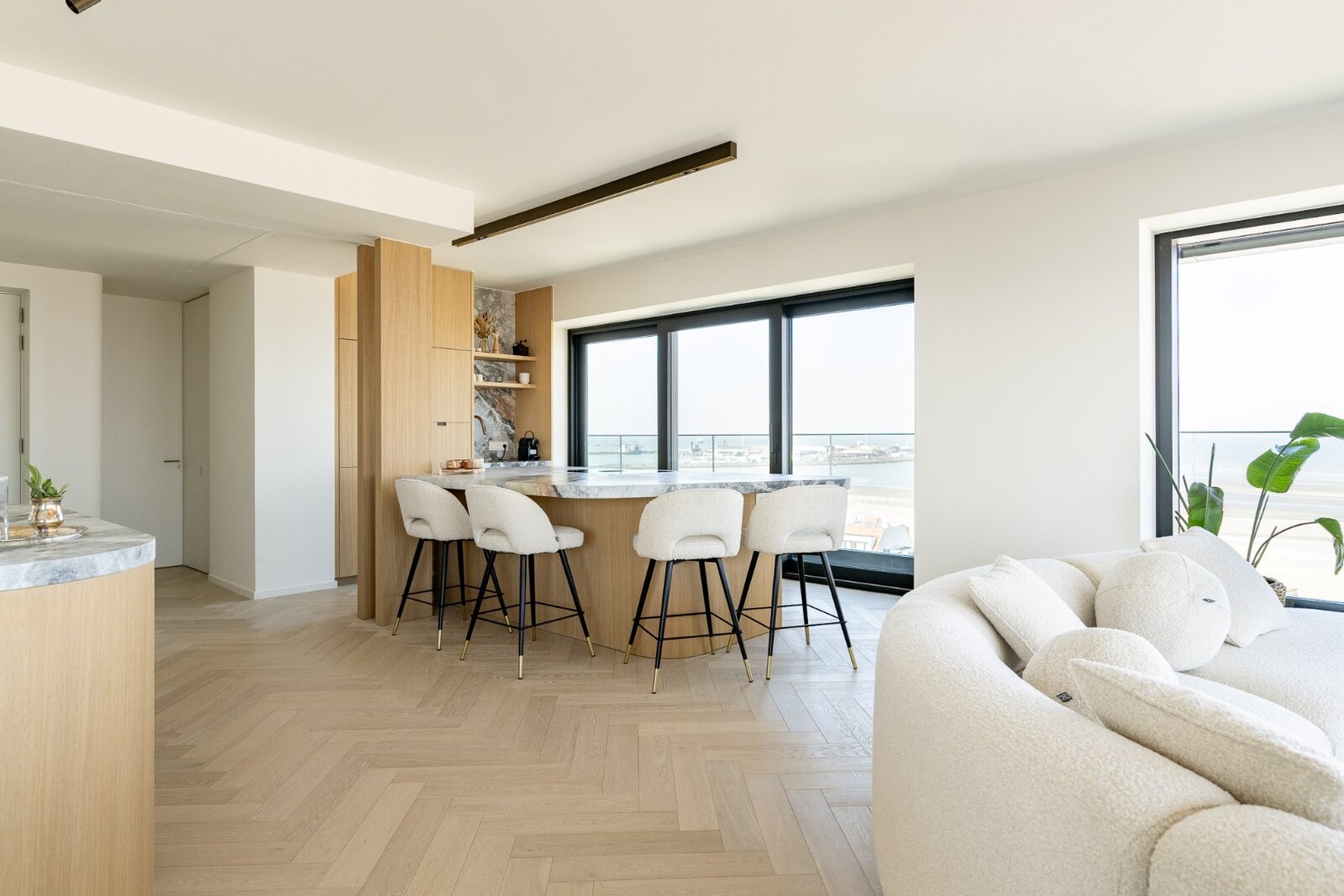 Ontdek dit nieuwbouwappartement met adembenemende panoramische zichten op de zee en het hinterland en gelegen in de Heldentoren te Knokke-Heist!