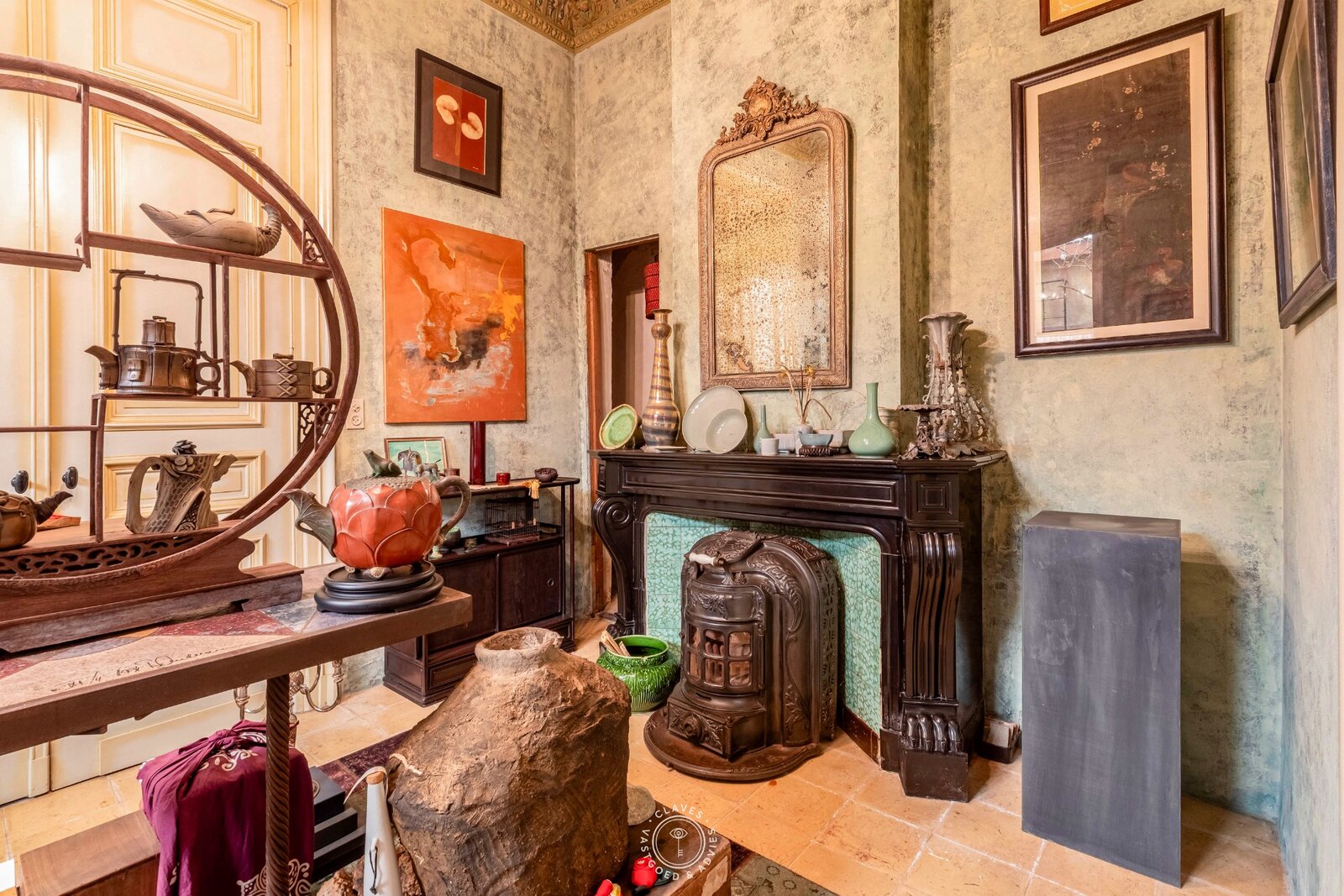 Het ruime woongedeelte omvat prachtige kamers, een keuken, twee badkamers, een bureauruimte, een zolder en een karaktervol atelier — elk vertrek straalt rust en raffinement uit.