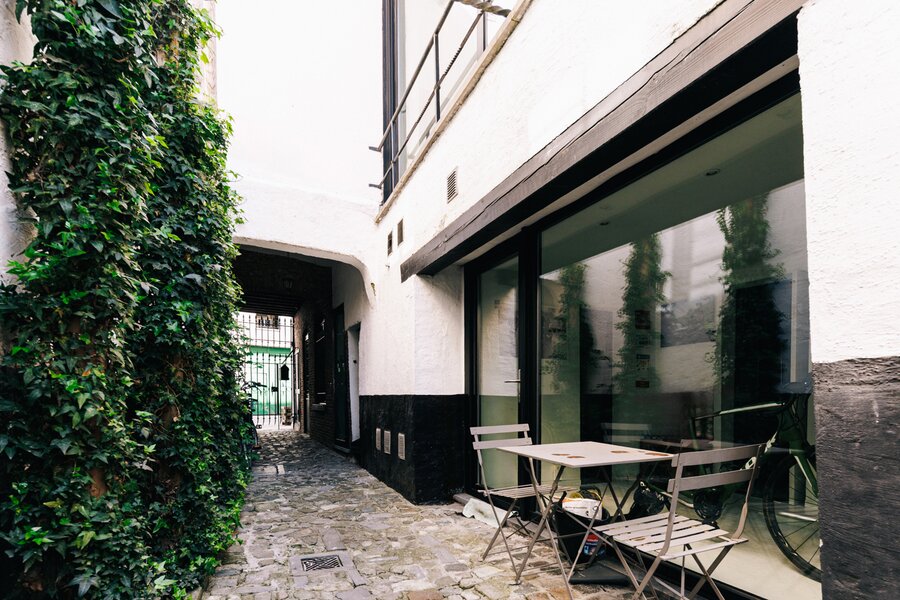 Verborgen in een sfeervol steegje van de heraangelegde en autoluwe Lange Sint-Annastraat ligt dit unieke herenhuis. Je wandelt er zó voorbij, en toch bevindt het zich op een toplocatie: vlak om de hoek van de levendige Sint-Jacobsmarkt en de gezellige Ossenmarkt, met hun vele cafés en restaurants. Centraal gelegen, maar heerlijk rustig verscholen.