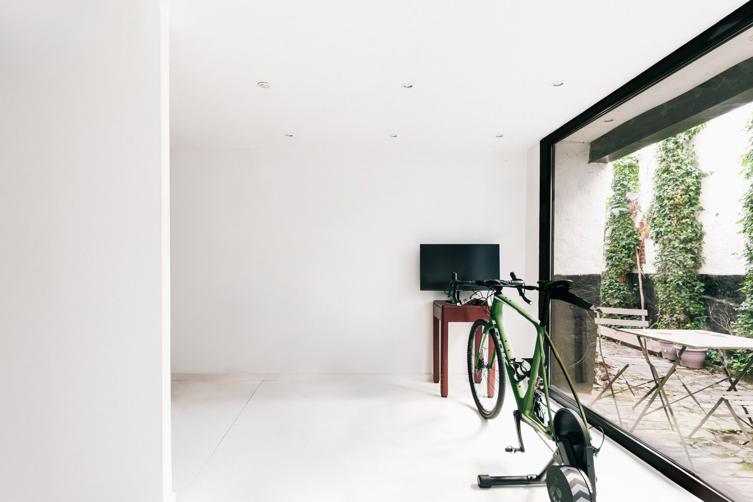 Bij aankomst parkeer je je fiets vlot in het steegje. Via de inkomhal krijg je toegang tot zowel het hoofdgebouw als een volledig afgewerkte polyvalente ruimte op het gelijkvloers. Deze ruimte, met eigen kitchenette, douchekamer en slaapkamer, is ideaal als aparte werkplek, praktijkruimte, atelier of voor inwonende tieners. Dankzij de aparte toegang is het perfect geschikt voor woon-werkcombinaties, of zelfs kleinschalige beroepsactiviteit.