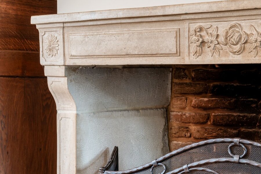 Via de warme en uitnodigende inkomhal met gastentoilet kom je binnen in de lichtrijke leefruimte, afgewerkt met een elegante eikenhouten vloer en een prachtige open haard als eyecatcher. De grote ramen zorgen voor veel natuurlijke lichtinval en geven rechtstreeks toegang tot de zuidgerichte tuin — een heerlijke plek om in alle rust te genieten.