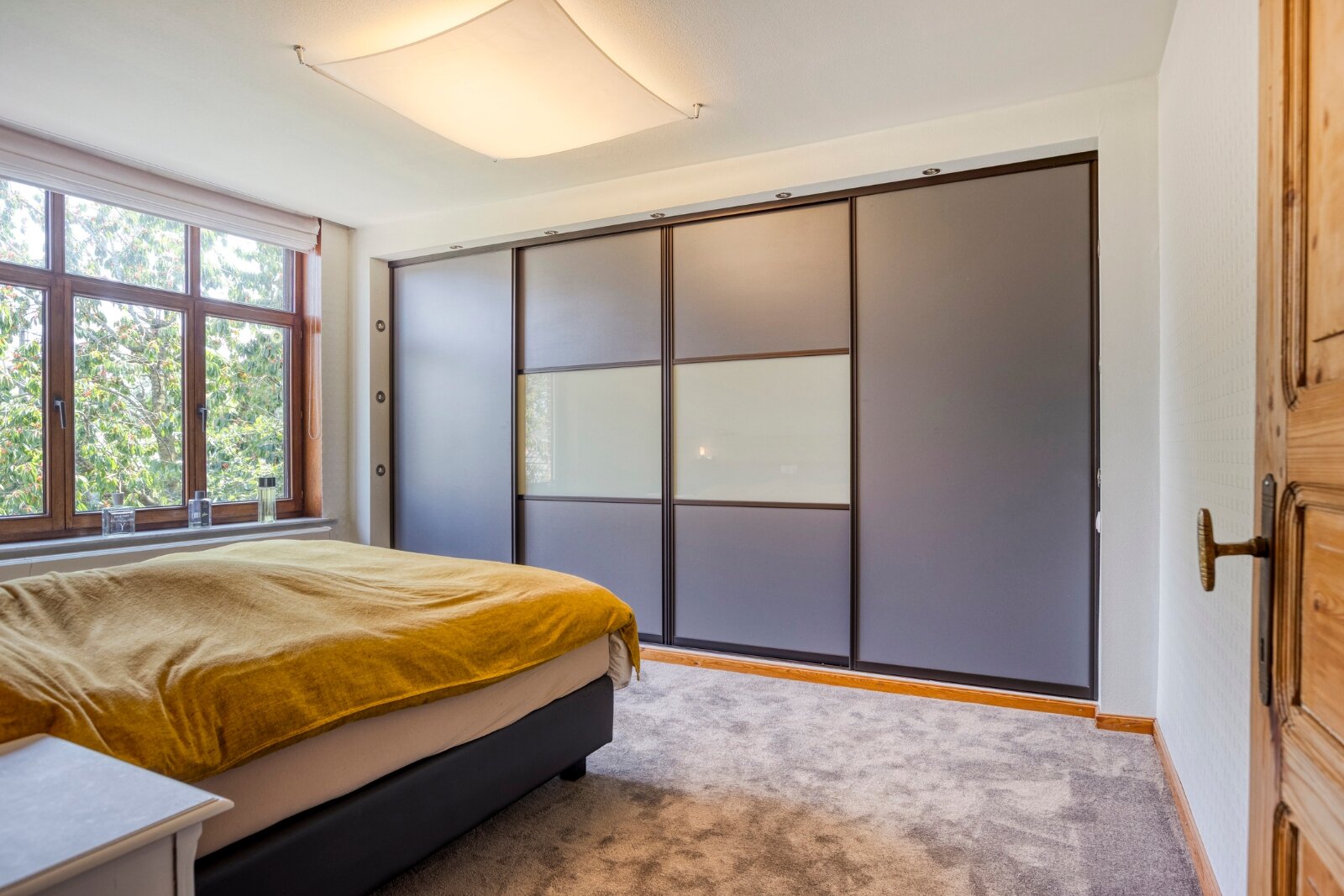 Eerste verdieping: nachthal - 3 ruime slaapkamers met inmaakkasten - grote badkamer uitgerust met ligbad, inloopdouche, toilet en lavabomeubel.