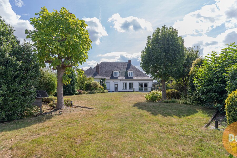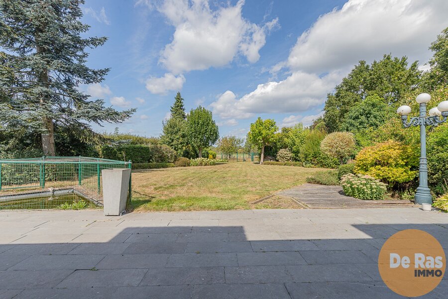Bij het binnenkomen valt meteen de royale inkomhal op, voorzien van vestiaire en gastentoilet. Van hieruit heeft u toegang tot een slaapkamer met badkamer, die ook perfect kan dienen als bureau of praktijkruimte. Aan de andere zijde bevindt zich de lichtrijke leefruimte van 50 m², waar u volop geniet van het zicht op de tuin en de open velden. De aangrenzende keuken, afgewerkt met hoogwaardige materialen, is praktisch ingericht en beschikt over een extra douche, een ruime berging en een wasplaats.