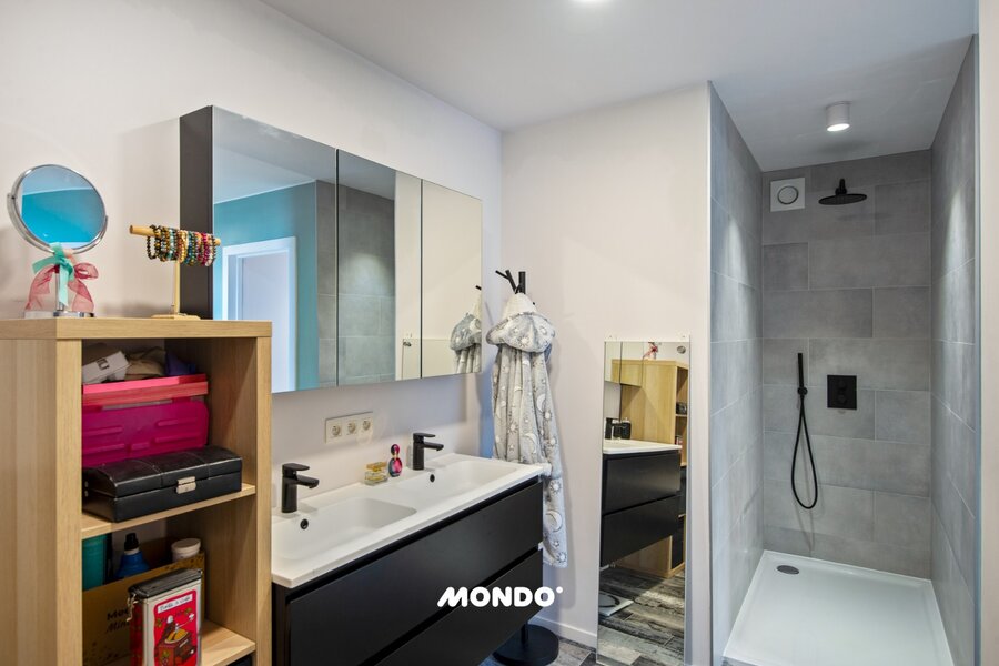 Techniek & energie: EPC A+ (E-peil -9), warmtepomp, zonnepanelen, vloerverwarming + zomerkoeling, hoogwaardige isolatie & ventilatie. 5 jaar vrijstelling onroerende voorheffing.