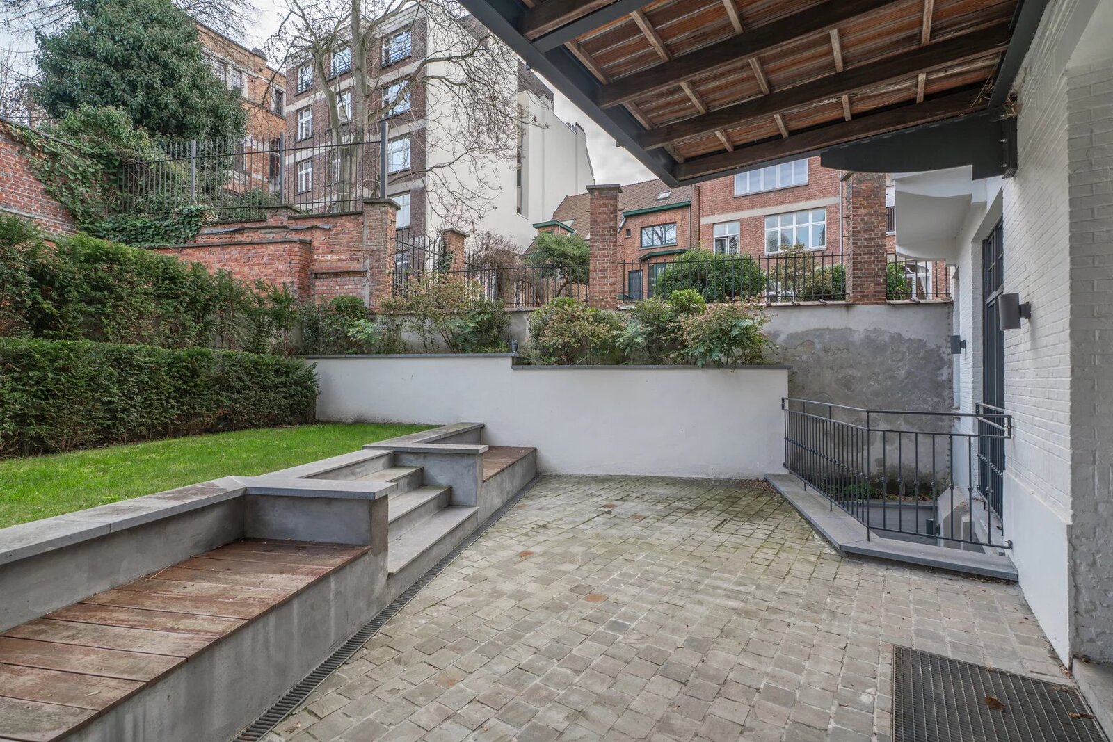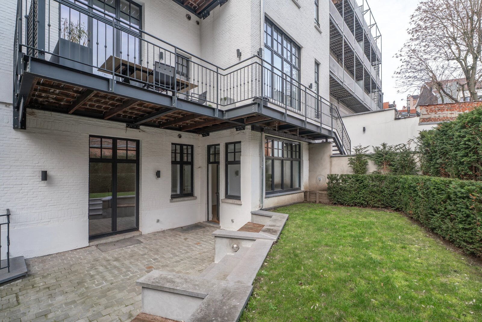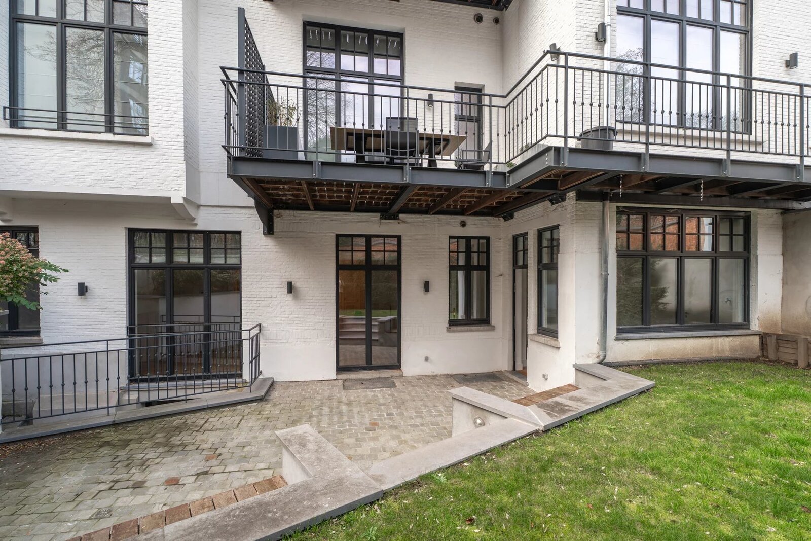 In een gebouw uit 1930, volledig gerenoveerd in 2021, op een steenworp afstand van Place Stéphanie en dicht bij winkels en openbaar vervoer, begane grond drie slaapkamers met een oppervlakte van ± 250m², met een tuin en een terras. Entree, hal met garderobe en gastentoilet, een grote woonkamer en eetkamer met toegang tot het terras en de tuin, een volledig uitgeruste en halfopen keuken, twee slaapkamers, elk met een eigen badkamer met douche, op de benedenverdieping, een prachtige ouderslaapkamer met kleedkamer en eigen badkamer. De flat biedt verschillende opslagruimtes. Hoge plafonds, eerste bewoning na renovatie, parketvloer, wasruimte, kelder, alarm, mogelijkheid om een garage te huren