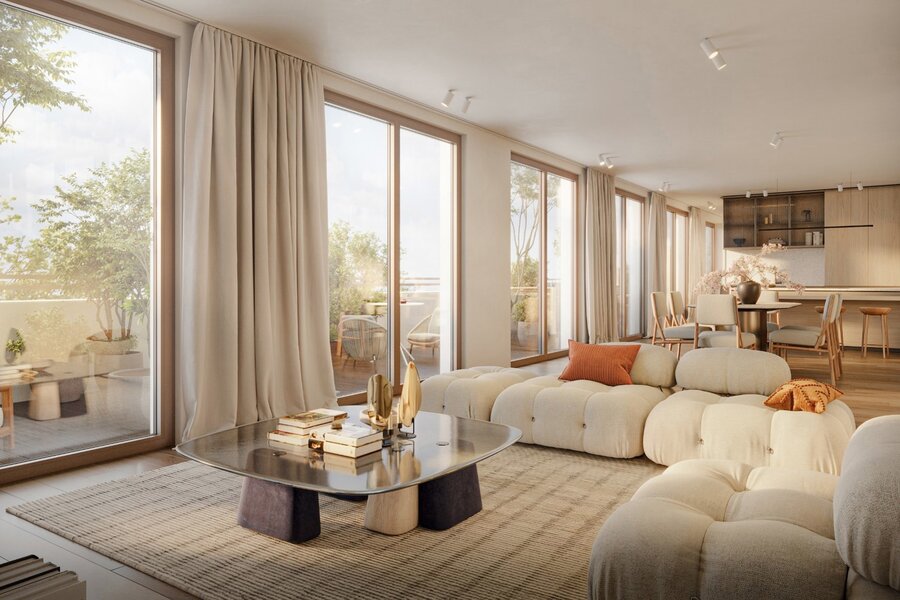 En voor wie écht groots wil wonen: de absolute blikvanger is de riante penthouse met ca. 187 m² bewoonbare oppervlakte en ca. 54 m² terras.
