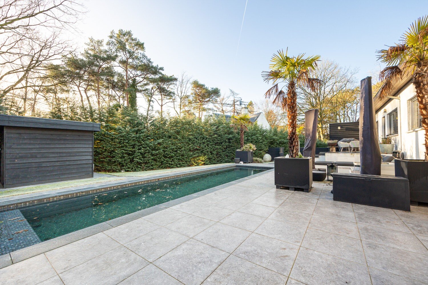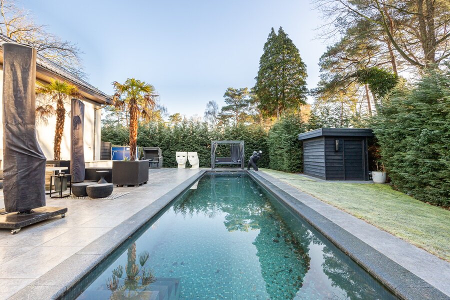 Buiten is het genieten: een omheinde, mooi aangelegde tuin met leibomen, struiken en bomen, een petanquebaan en een zwembad met terras dat uitnodigt om te blijven zitten tot de zon ondergaat, en praktische extra’s zoals een tuinhuis, carport en houtopslag. Alles is doordacht ingeplant, waardoor het geheel niet alleen mooi oogt, maar ook gewoon heerlijk werkt in het dagelijks leven. Verder zijn er vele extra's zoals vb. airco en zonnepanelen,