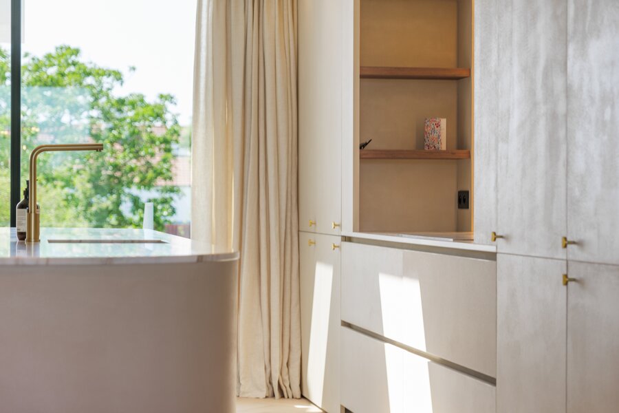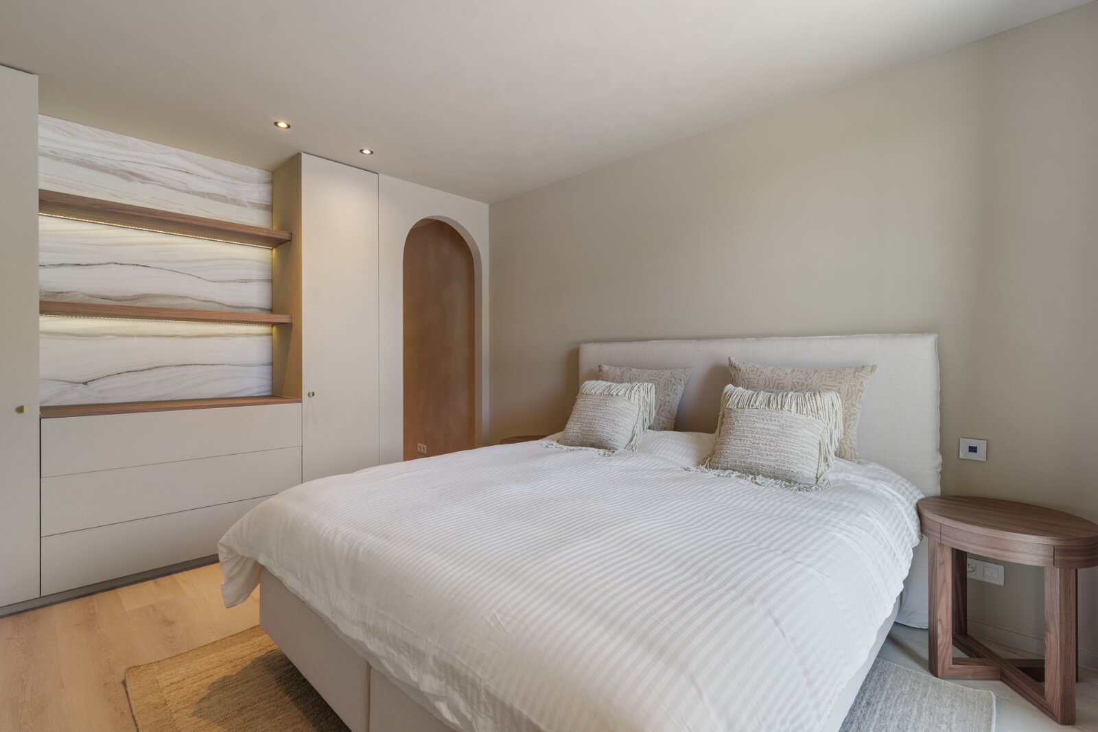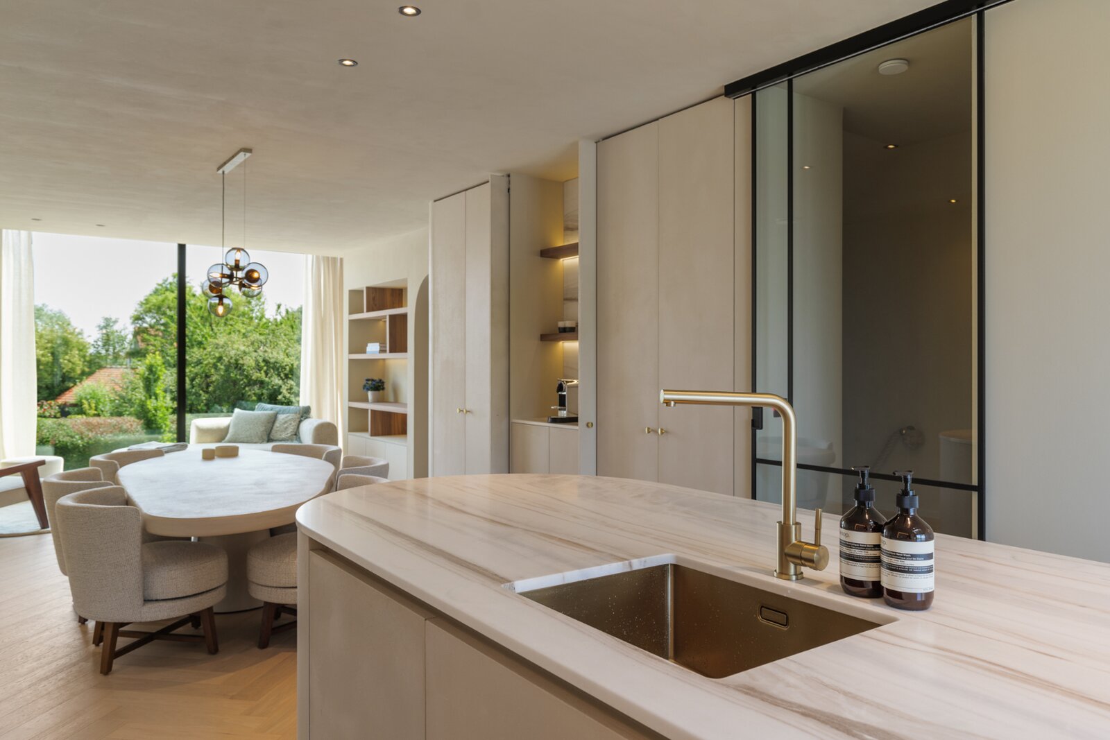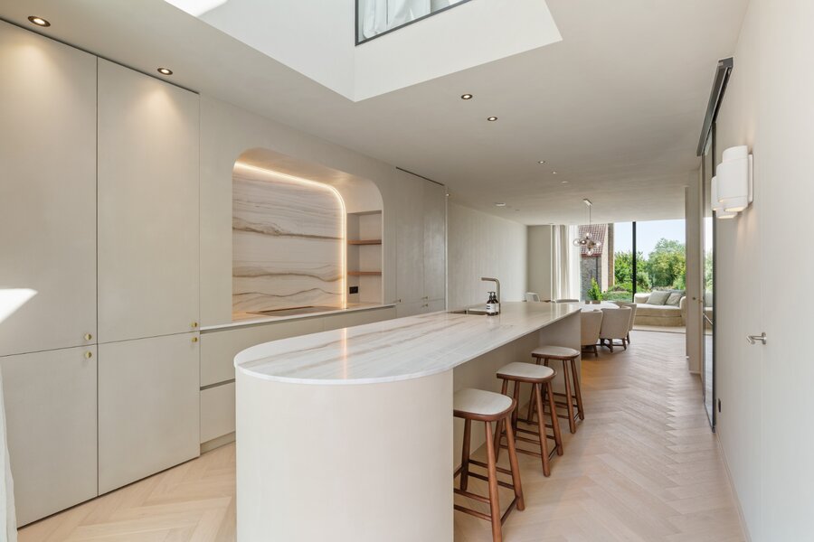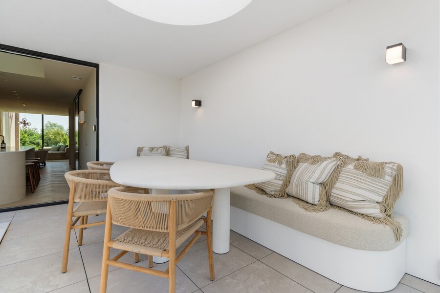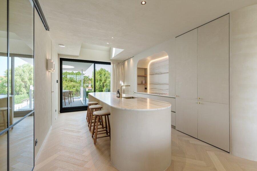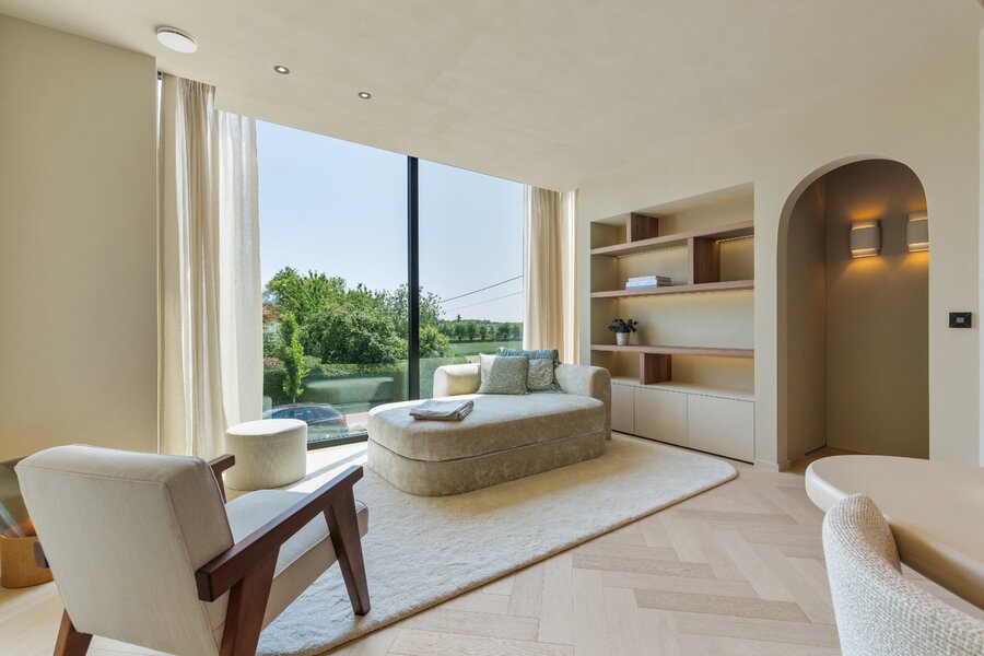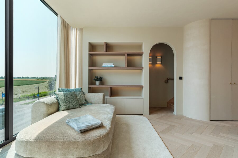 Het volledige interieur is ontworpen door een gerenommeerd interieurarchitect en wordt geleverd als totaalconcept: van meubels en verlichting tot decoratie en textiel. Elk detail, materiaal en kleur is zorgvuldig afgestemd voor een harmonieuze en elegante woonbeleving.