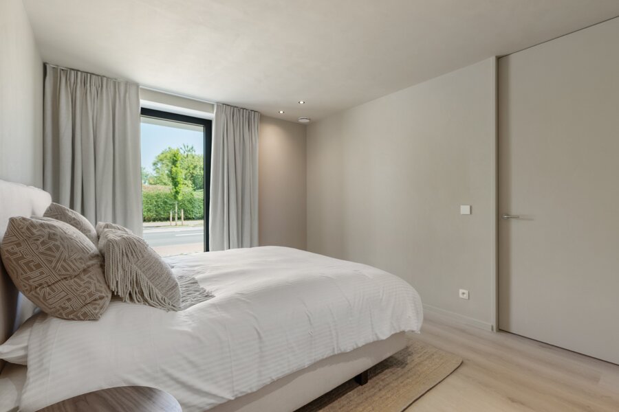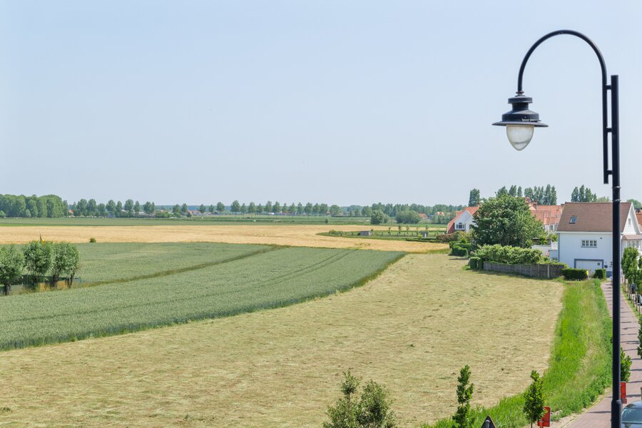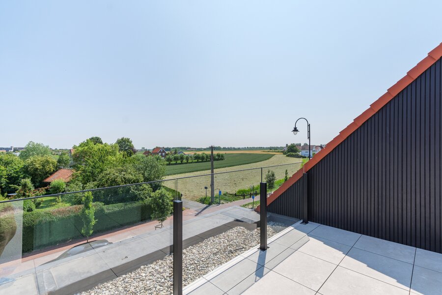 - 2de verdieping: Master bedroom met ensuite douche, lavabo en apart toilet. Terras vooraan met zicht op de polders.