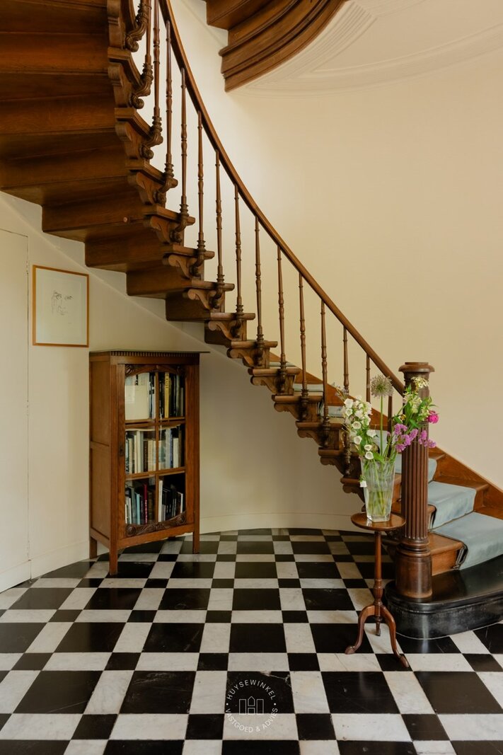 De woonoppervlakte bedraagt 736 m², exclusief zolder, de aparte garages, bergingen en de ondergrondse kelder.