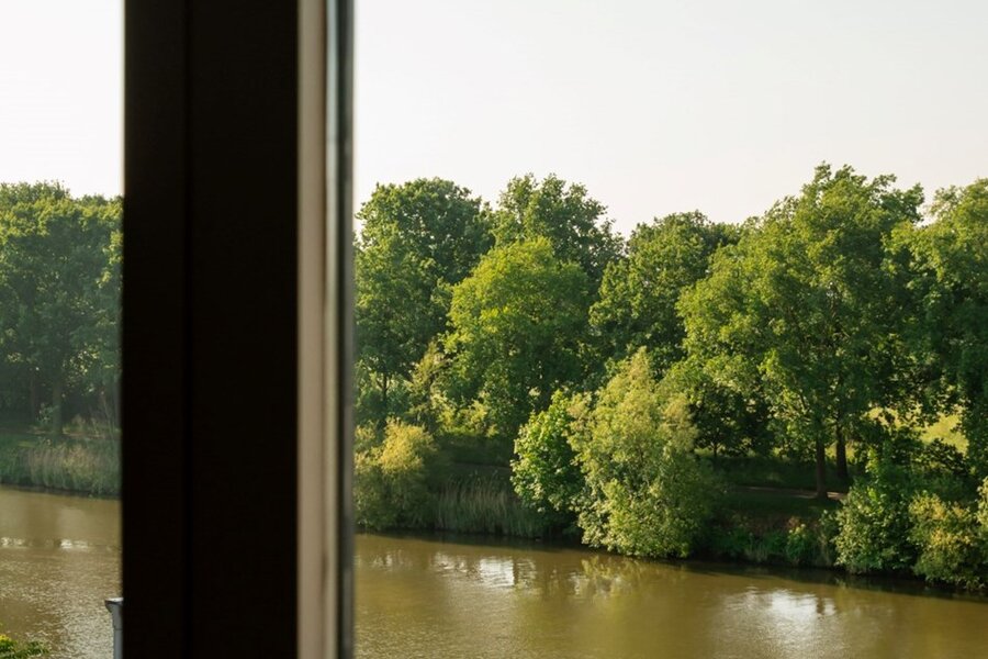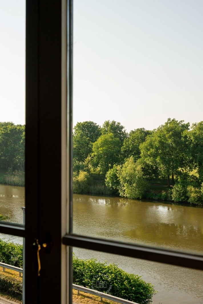 Bij het betreden van de woning verwelkomt een royale inkomhal u in een huis met indrukwekkende volumes en grote raampartijen. Deze zorgen voor een overvloed aan natuurlijk licht en bieden prachtige vergezichten over de privatieve parktuin en De Lieve.
