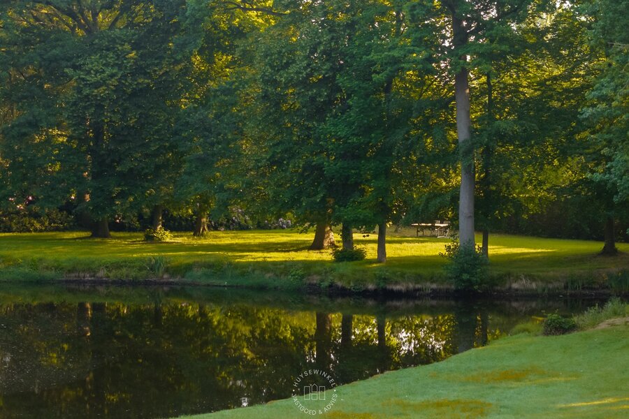 Verder zijn er twee ruime aangebouwde garages aanwezig. Het omliggende landschapspark is voorzien van een prachtige vijver en een authentieke ijskelder, waardoor het geheel een bijzondere en idyllische sfeer uitstraalt.