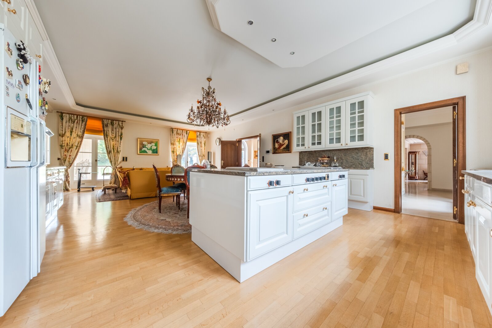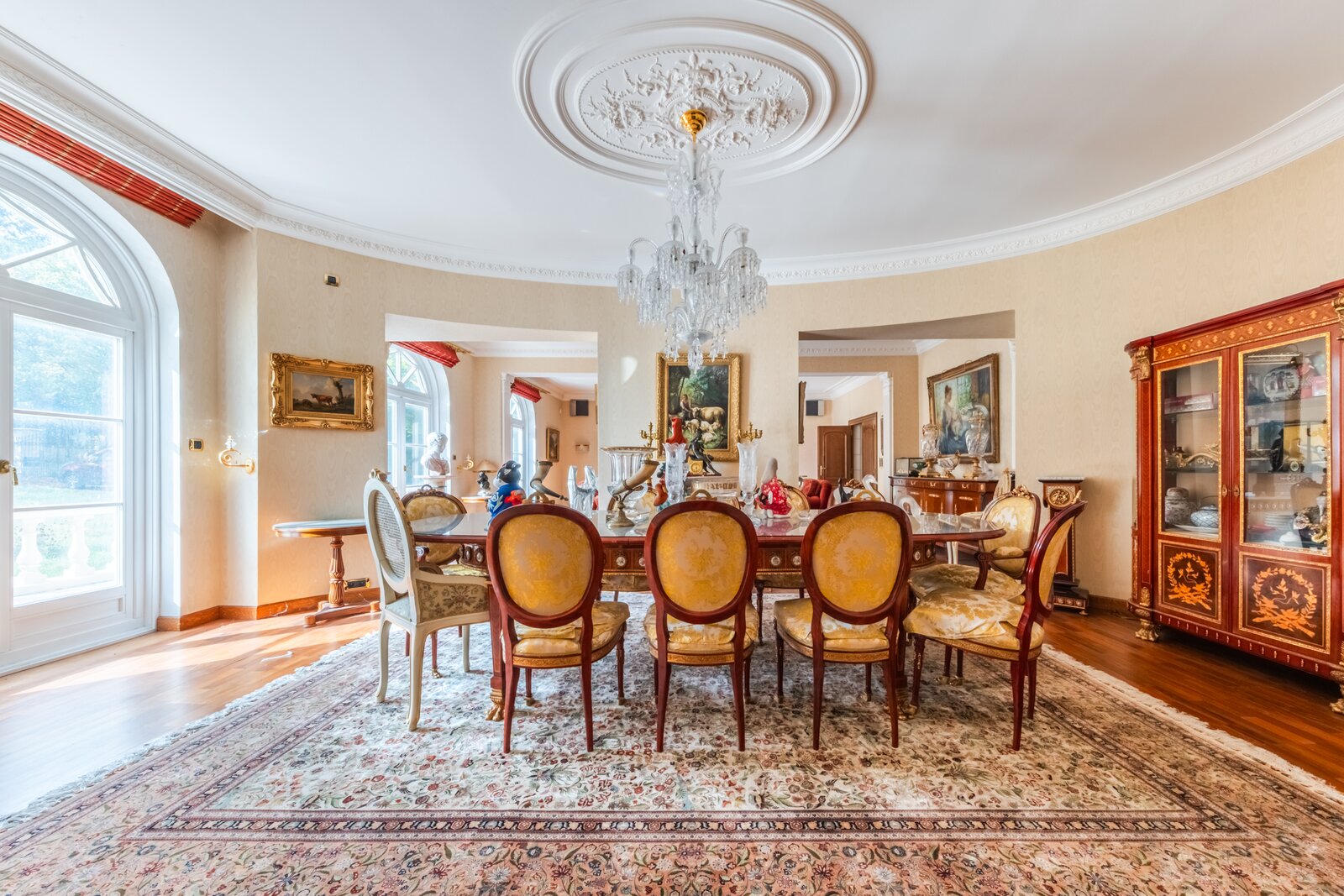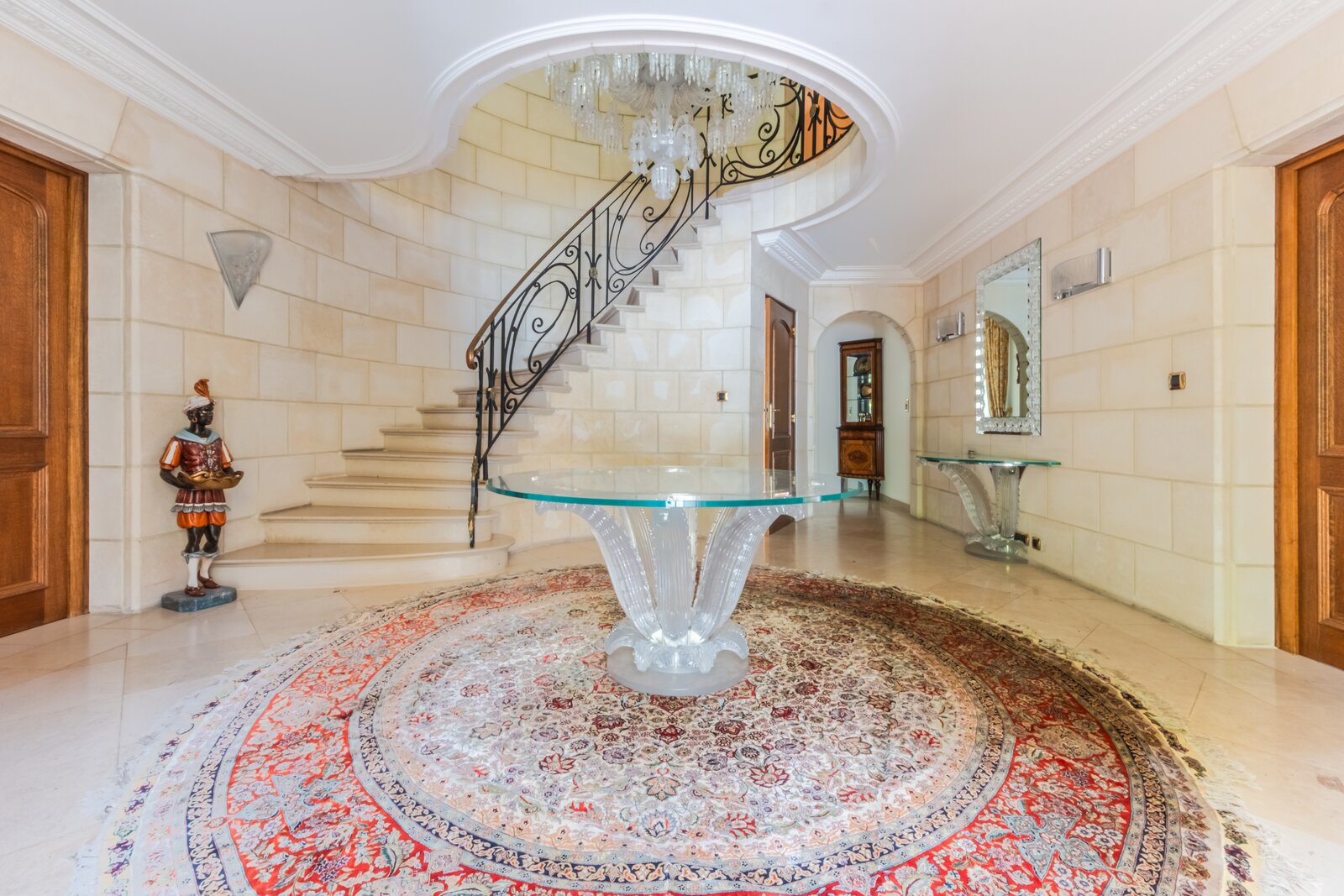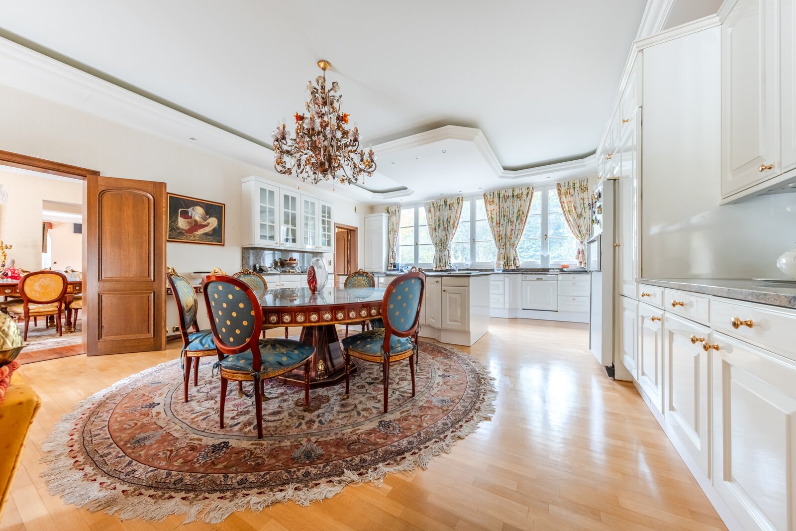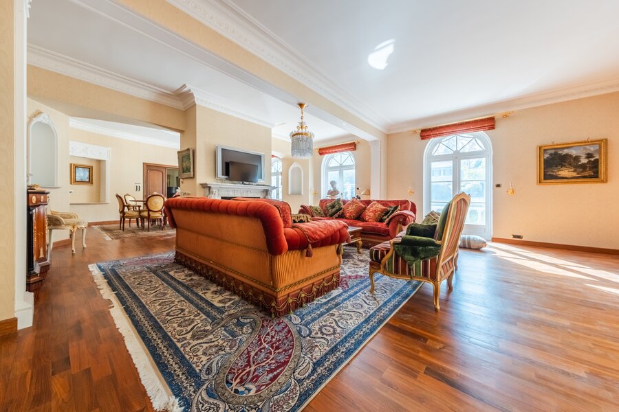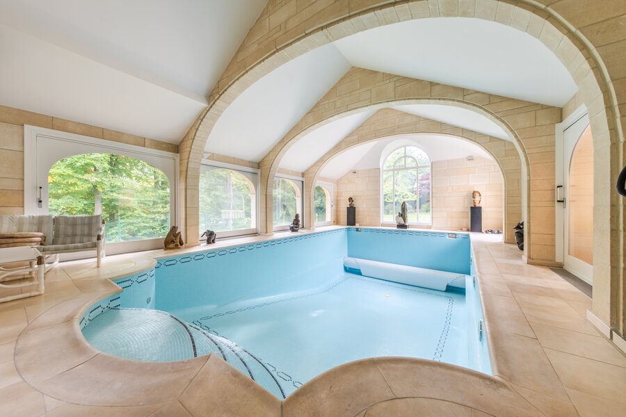 Op het gelijkvloers leidt de ruime inkomhal, met zijn majestueuze trap die uitgeeft op de vestiaire en het gastentoilet, u naar het bureau van ±30 m² evenals naar de grote, lichtrijke ontvangstruimtes van ±80 m². Deze bestaan uit een salon met open haard dat uitgeeft op de eetkamer. De hyper-uitgeruste keuken, met een eethoek, beslaat in totaal ±50 m² en geeft toegang tot een bijkeuken en een mooi overdekt terras. Een ontspanningsruimte met sauna, sanitair en een prachtig zwembad vervolledigt dit niveau.