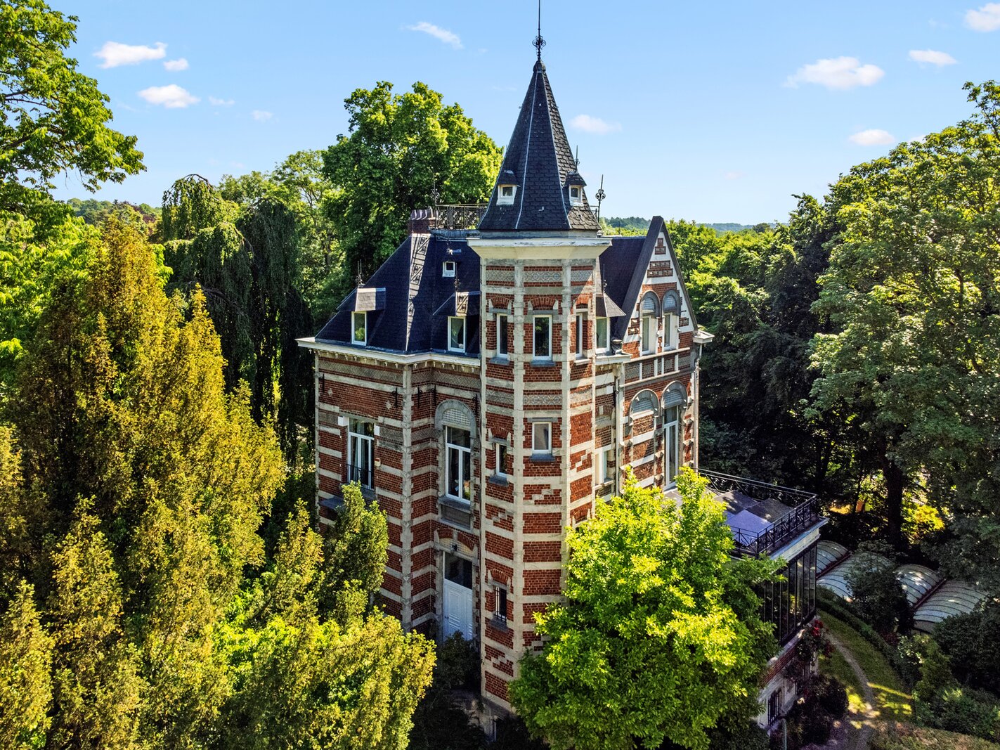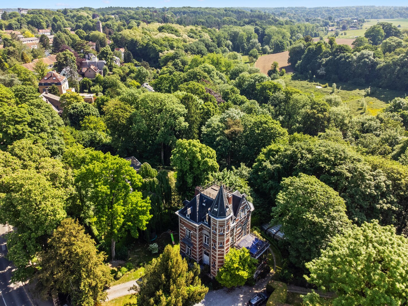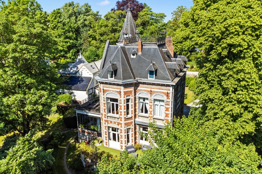Ukkel: Victoire - Junot stelt u exclusief deze karaktervolle woning voor, gebouwd in de 19e eeuw op een perceel van ± 80 are. De woning is gerenoveerd en combineert oud en nieuw. De uitgestrekte tuin omvat beboste gedeelten, een groot overdekt en verwarmd zwembad, weelderige groenzones, kinderspeelplaats. Gelijkvloers: Ruime inkomhal, grote ontvangstruimtes, salon, eetkamer acces tot het terras, prachtig uitzicht op de tuin en eeuwenoude bomen, wintertuin, volledig uitgeruste keuken. Eerste verdieping: Master suite met open haard, badkamer met douchekamer, toilet , tv-salon met open haard en toegang tot het terras met zonnepanelen, buro. Tweede verdieping: Drie slaapkamers, speelkamer, badkamer (enkele treden hoger), douchekamer, acces tot de torenkamer en zolder. Overige ruimtes: Zolder, ruime kelders, stookruimte met condensatieketel op gas, voorraadkamer, waskamer, kelder en toegang tot de tuin. Automatische poort met parkeermogelijkheid voor 7 wagens. Naast de woning bevindt zich een atelier. Het park is volledig omheind en toegankelijk via een automatische poort. EPC: G