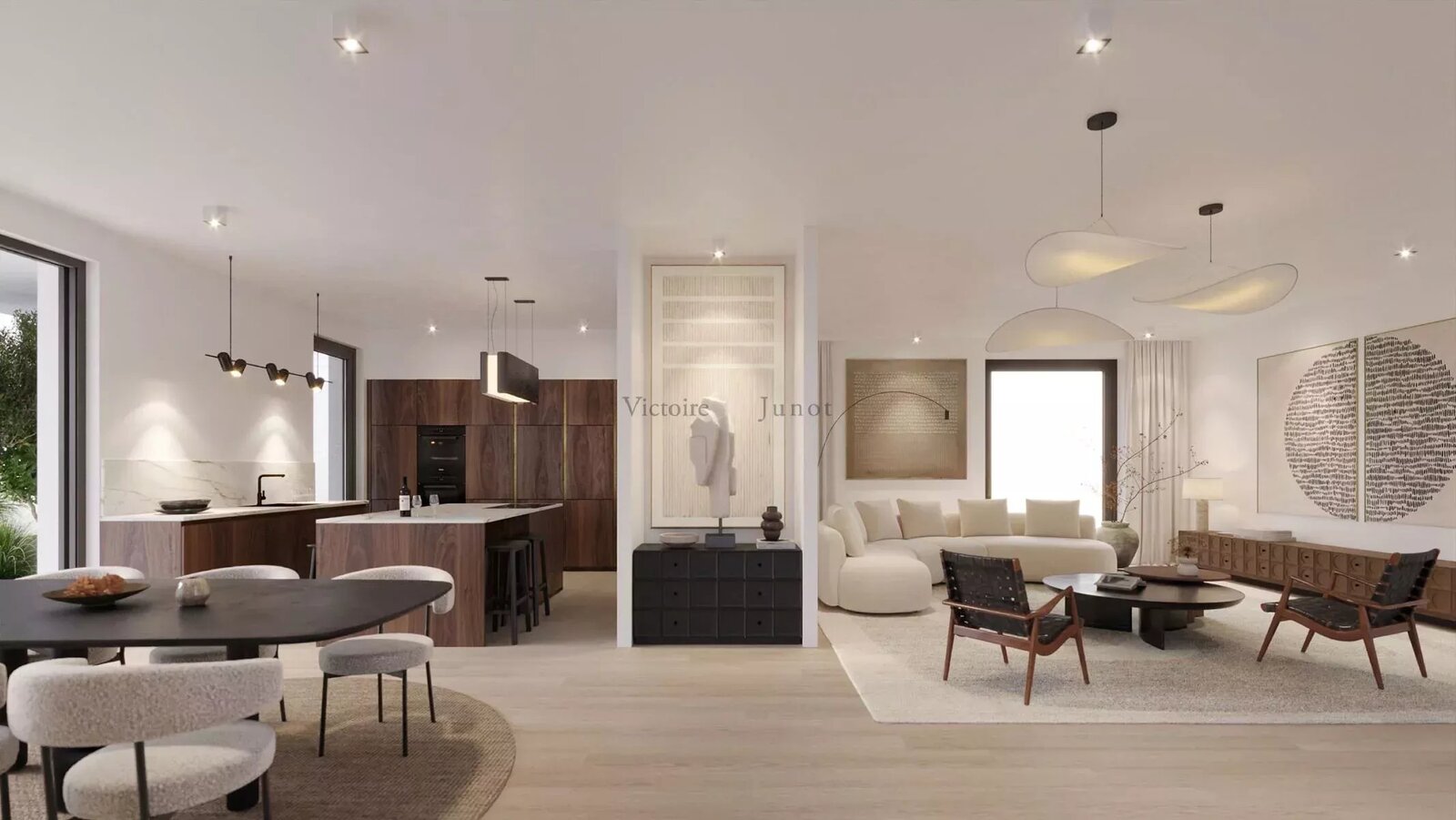 Victoire-Junot biedt dit 113,5 m² grote appartement met 2 slaapkamers op de 1e verdieping met terras, in het luxe vastgoedproject “GEM” gelegen aan de rue de la Pepinière, naast de tuinen van het Koninklijk Paleis. Het beschikt over :