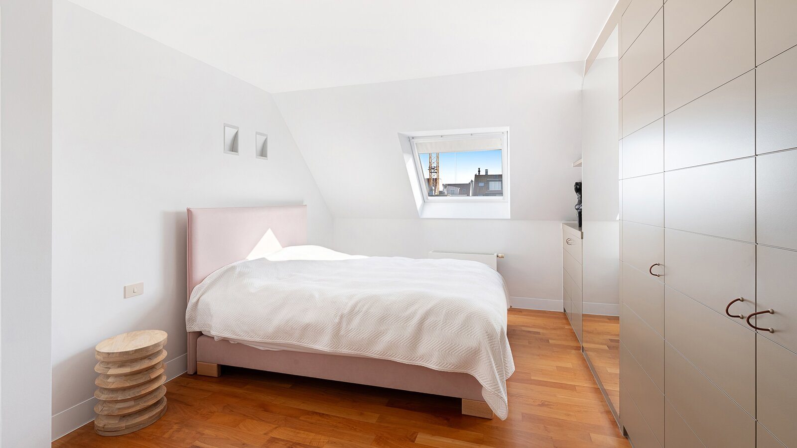 Op de duplexverdieping bevinden zich twee volwaardige slaapkamers, beide voorzien van talrijke ingemaakte kasten. Verder beschikt het appartement over een comfortabele badkamer met ligbad, douche en lavabo, een aparte douchekamer met inloopdouche en lavabo, evenals een extra afzonderlijk toilet.