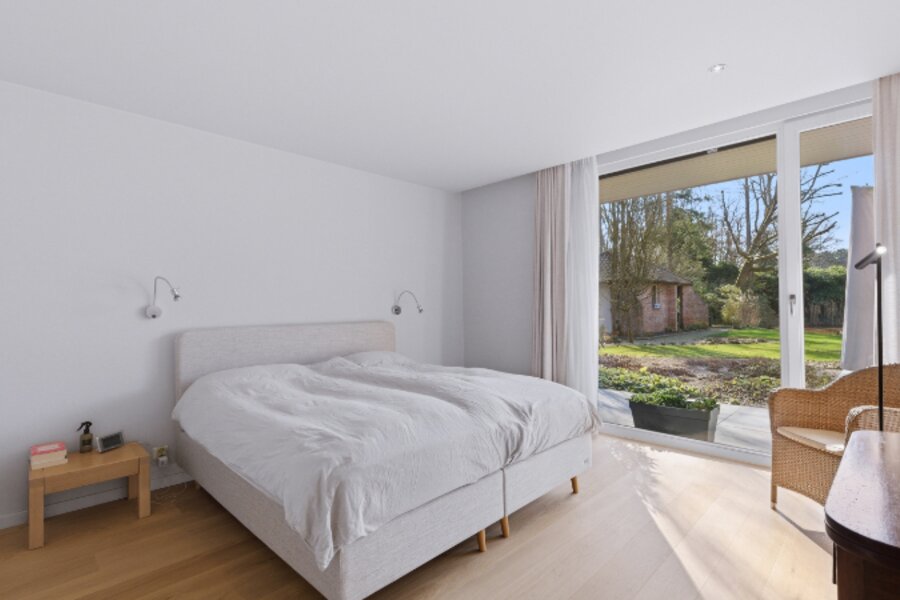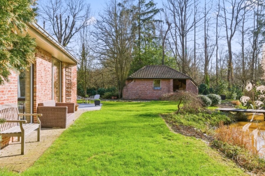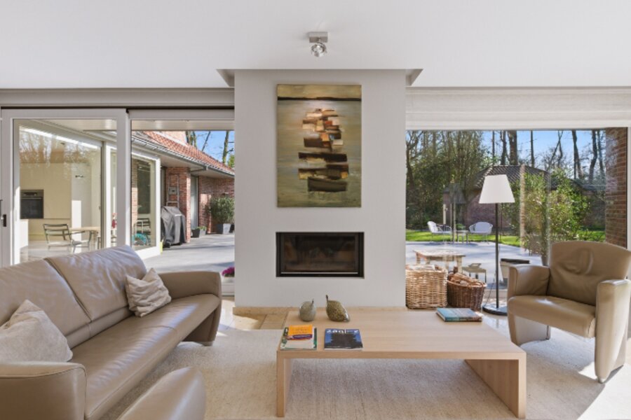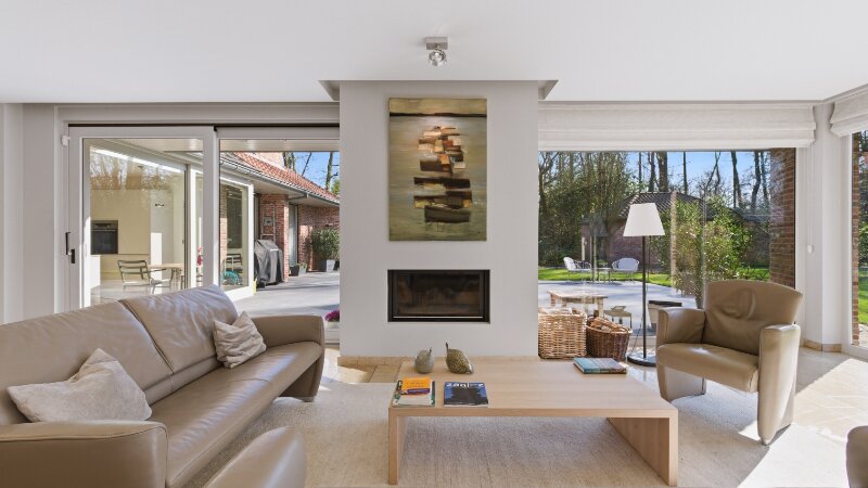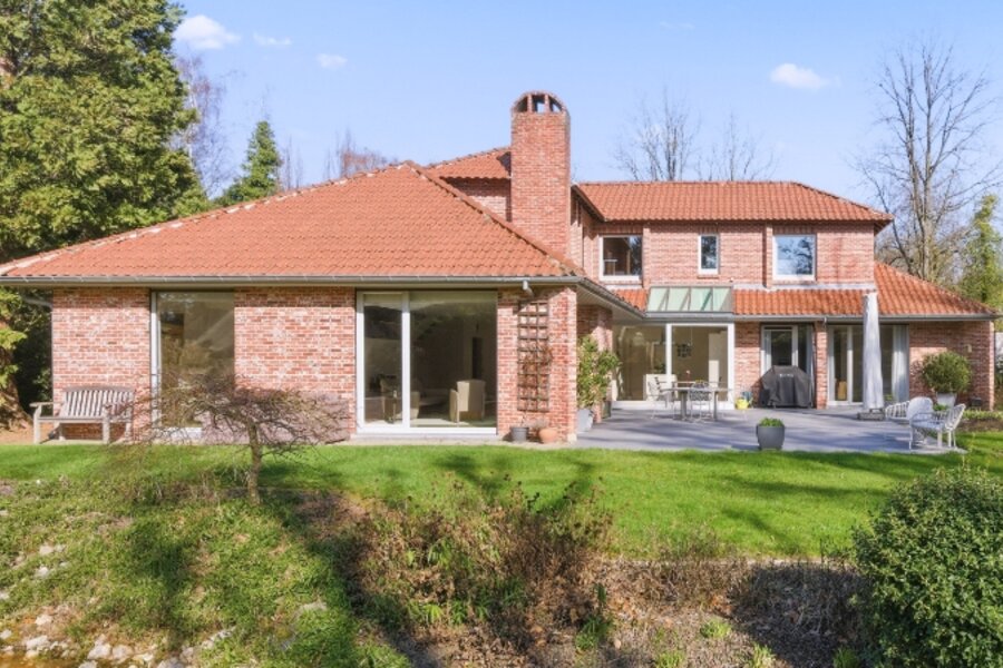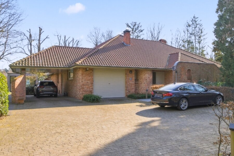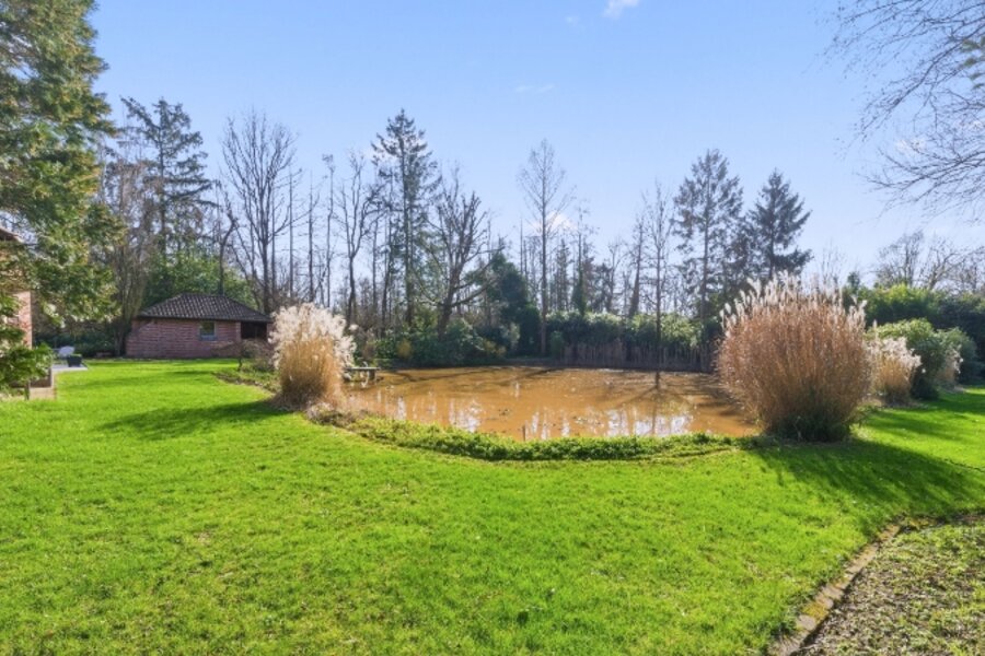 Zeer rustig en uitzonderlijk gelegen villa op een achterliggend perceel van 30 are 48 ca met private toegangsweg, grote vijver en zeer mooie aangelegde tuin.