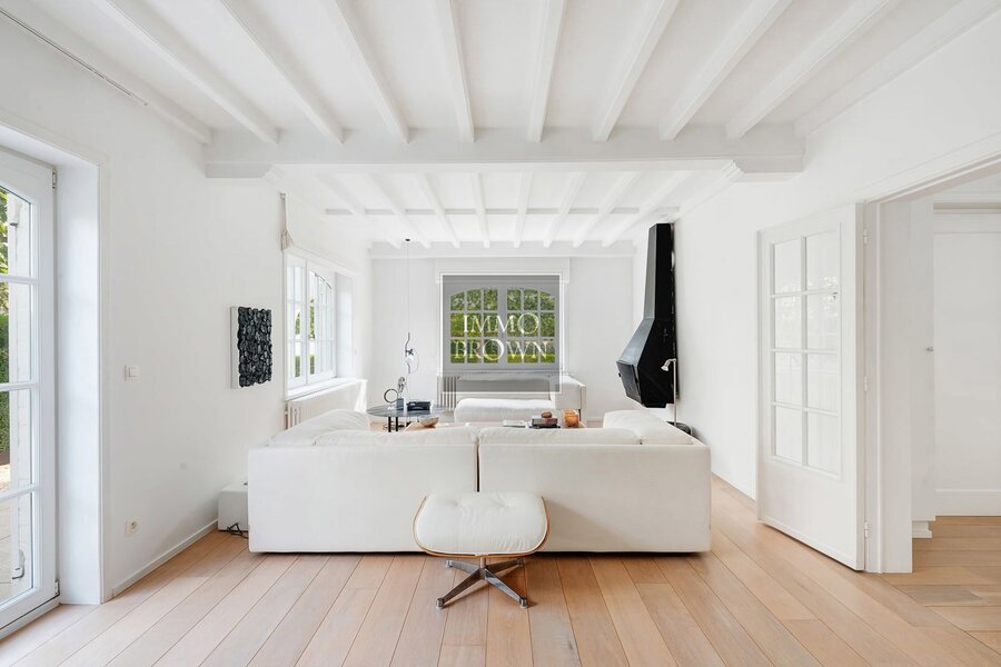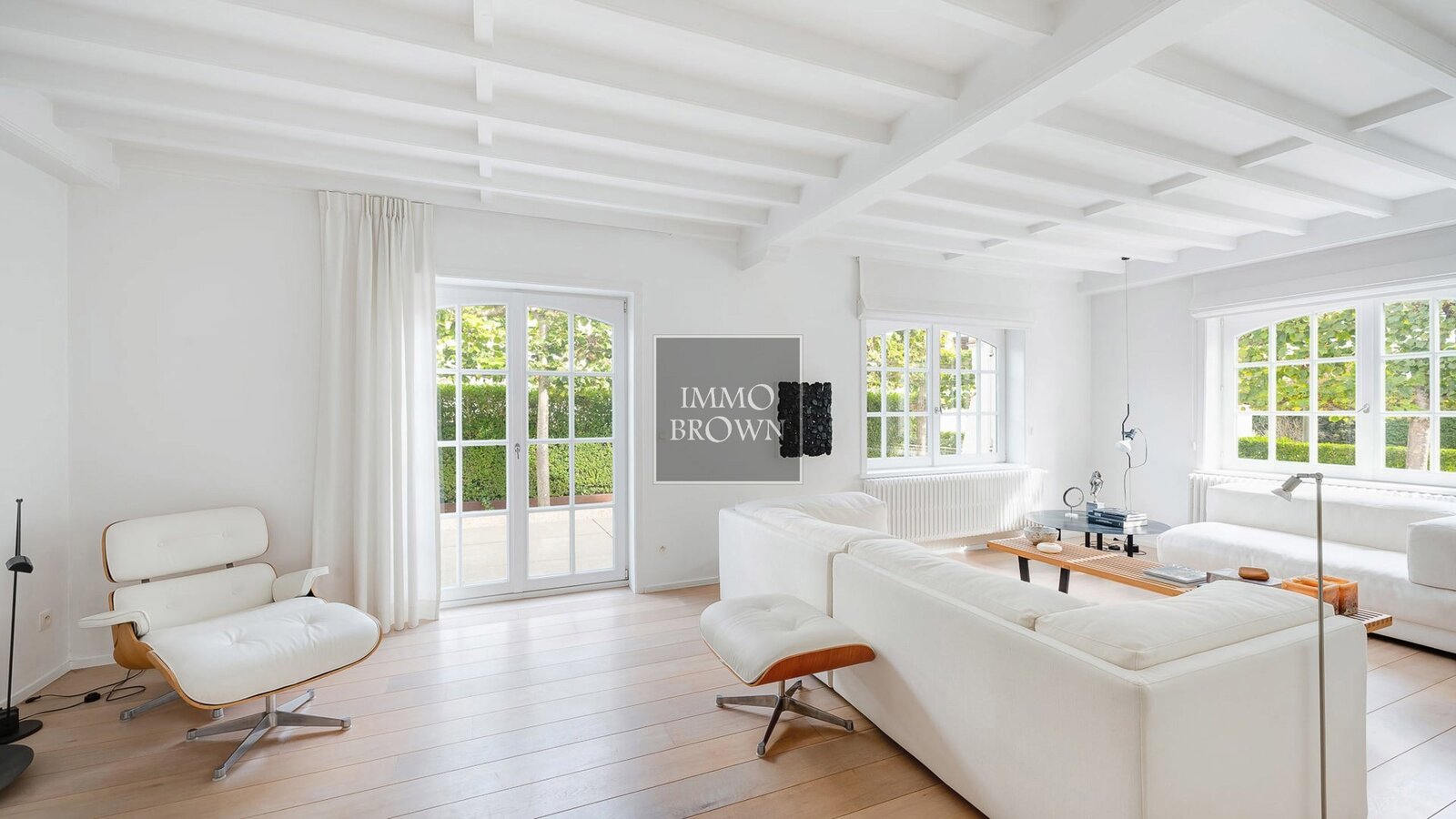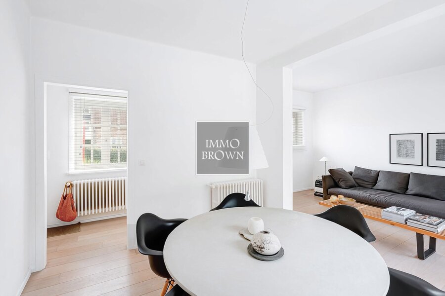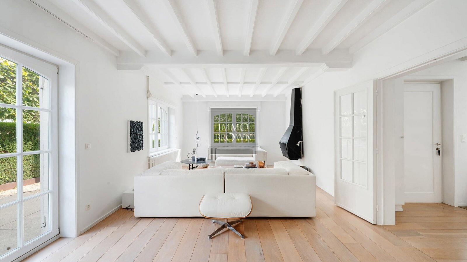 De inkomhal met stijlvolle trap verwelkomt u in een lichtrijke leefruimte met directe toegang tot het terras. Aansluitend bevinden zich een aparte eetkamer en een tweede, gezellige zithoek – ideaal voor familie of bezoekers.