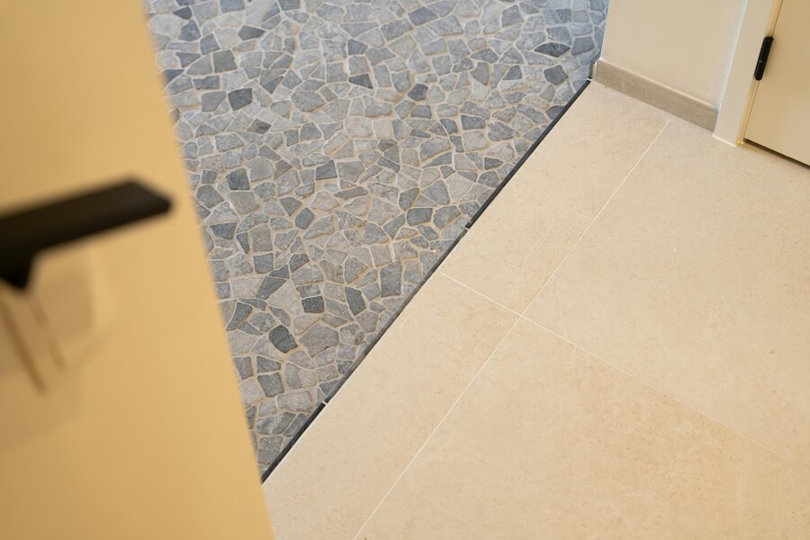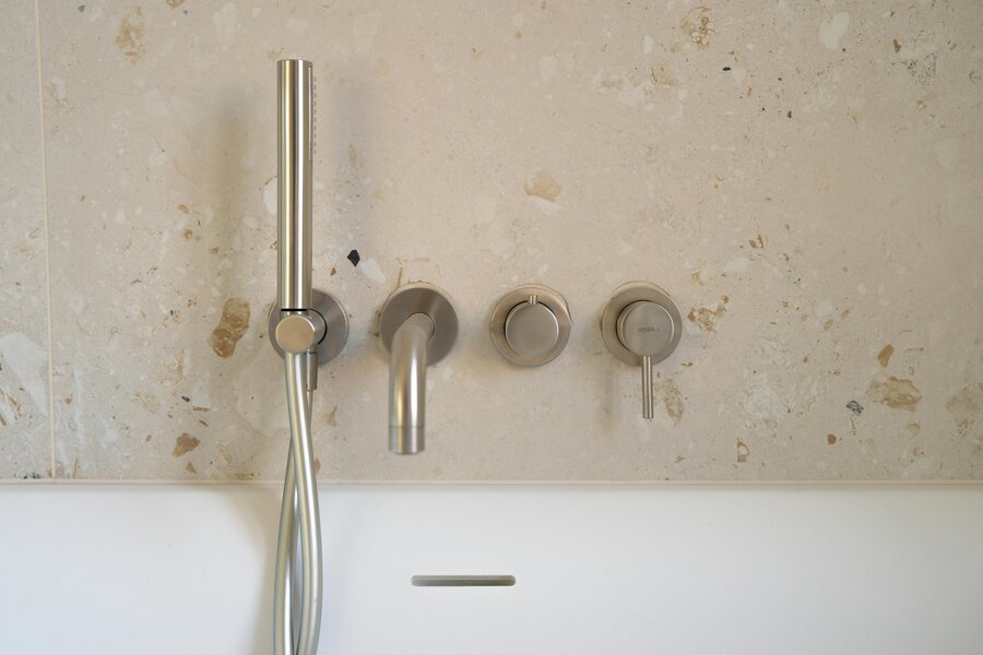 Eerste verdieping: Nachthal met toilet - master bedroom met verbinding naar het terras - dressing/bureaukamer - badkamer met lavabomeubel, ligbad en inloopdouche.