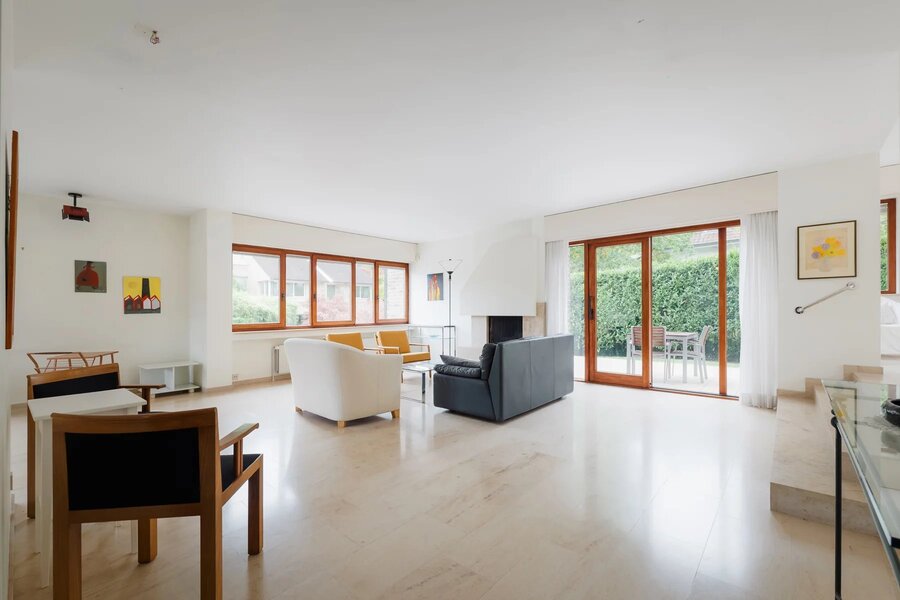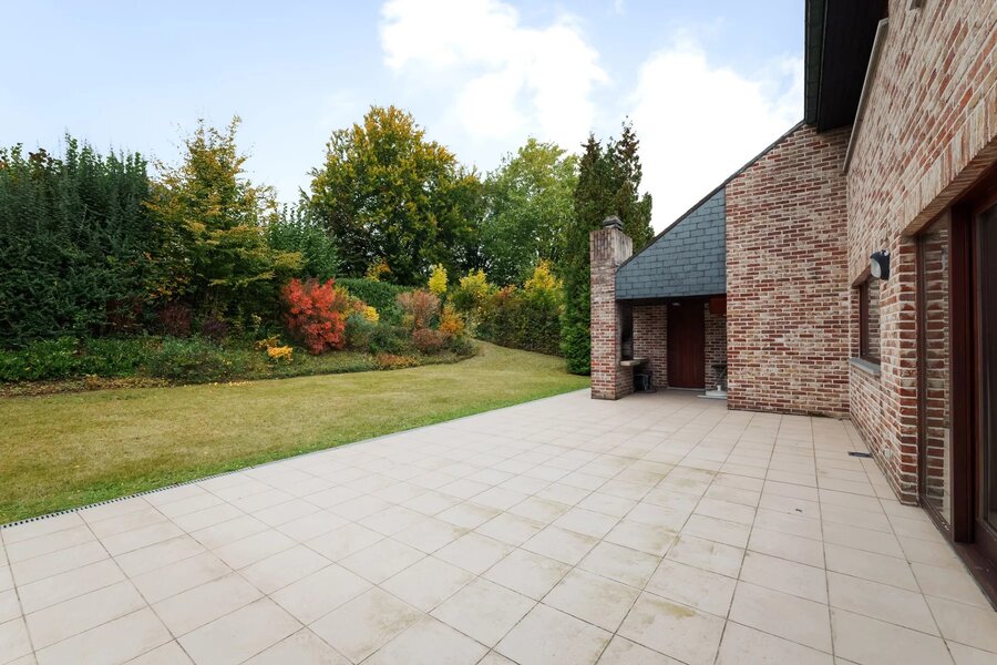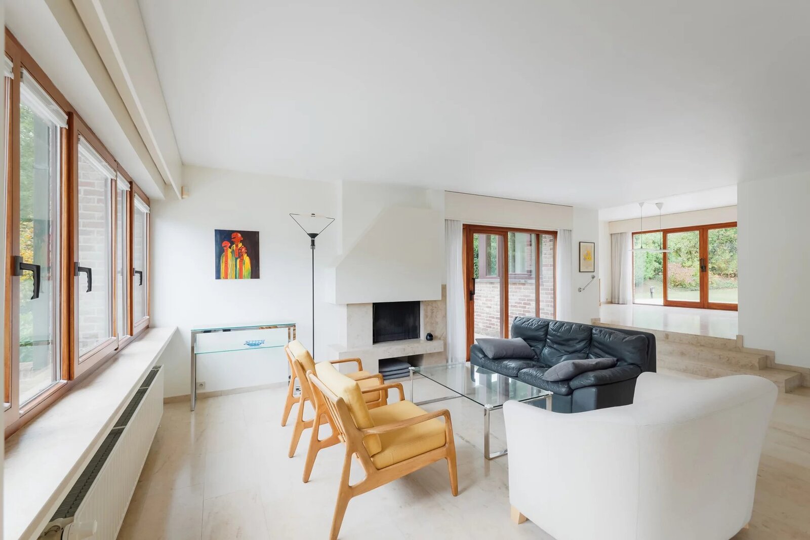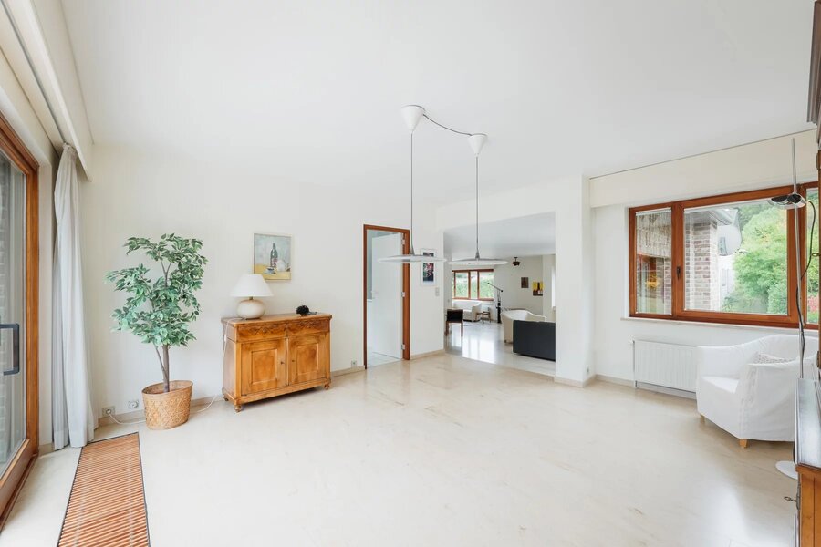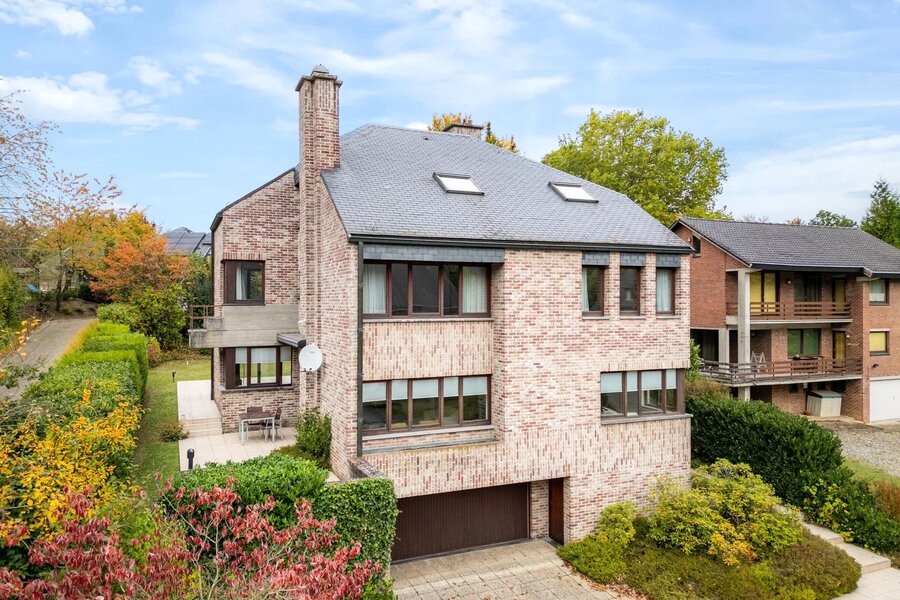 Tervuren: Gelegen in een van de meest gegeerde wijken van Tervuren, bevindt deze lichtrijke villa, gebouwd in 1976, zich op een prachtig perceel van ± 9 are en beschikt zij over een bebouwde oppervlakte van ongeveer 450 m². De woning omvat een ruime inkomhal met vestiaire, prachtige doorlopende ontvangstruimtes met marmeren vloer, die mooie volumes bieden en directe toegang geven tot de terrassen en de tuin, een eetkamer, een volledig ingerichte keuken met ontbijthoek, evenals een aanpalende wasruimte met toegang tot een overdekt terras voorzien van een barbecuehoek. Op de verdieping biedt de villa een master suite met dressing en een volledig uitgeruste badkamer, drie bijkomende slaapkamers, twee douchekamers en toegang tot een grote ingerichte en geïsoleerde zolder. De indeling laat eveneens de uitoefening van een vrij beroep toe dankzij een aparte ingang naast de garage-ingang, bestaande uit een hal die toegang geeft tot een kantoor of slaapkamer, een douchekamer en een toilet. De kelderverdieping omvat kelders, een stookruimte en een voorraadkelder. Een ruime garage met automatische poort en plaats voor maximaal vier wagens vervolledigt het geheel. Deze villa charmeert door haar prachtige volumes en lichtinval, evenals door de hoogwaardige en edele materialen. Uitrusting: waterverzachter, gascondensatieketel (2020), alarmsysteem. EPC C.