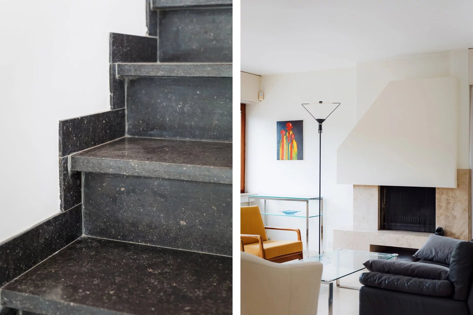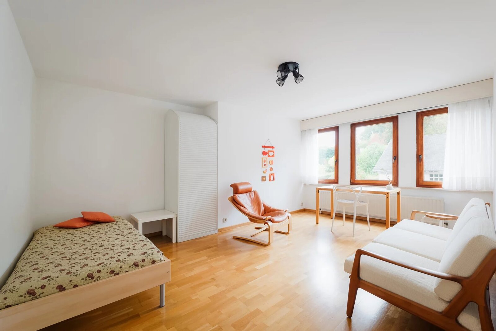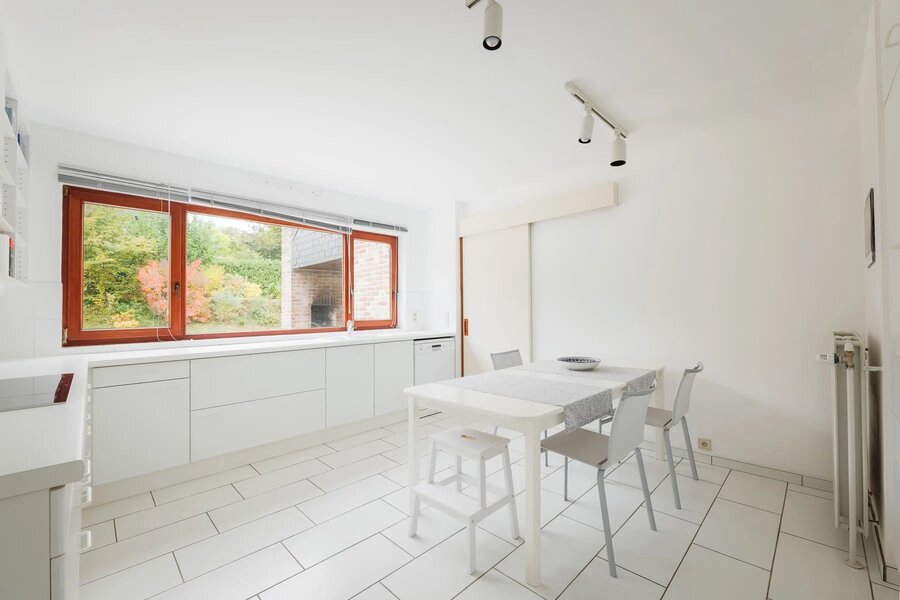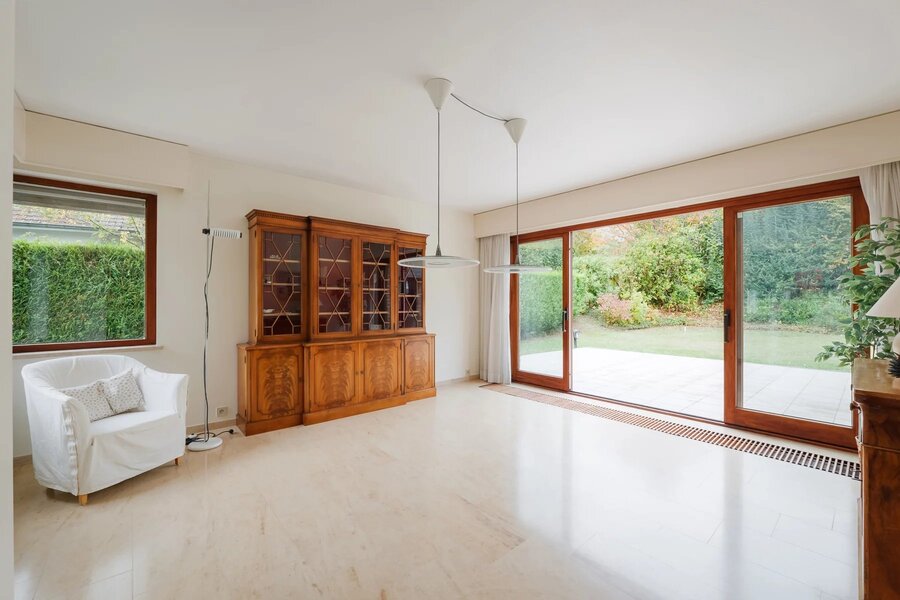 Tervuren: Gelegen in een van de meest gegeerde wijken van Tervuren, bevindt deze lichtrijke villa, gebouwd in 1976, zich op een prachtig perceel van ± 9 are en beschikt zij over een bebouwde oppervlakte van ongeveer 450 m². De woning omvat een ruime inkomhal met vestiaire, prachtige doorlopende ontvangstruimtes met marmeren vloer, die mooie volumes bieden en directe toegang geven tot de terrassen en de tuin, een eetkamer, een volledig ingerichte keuken met ontbijthoek, evenals een aanpalende wasruimte met toegang tot een overdekt terras voorzien van een barbecuehoek. Op de verdieping biedt de villa een master suite met dressing en een volledig uitgeruste badkamer, drie bijkomende slaapkamers, twee douchekamers en toegang tot een grote ingerichte en geïsoleerde zolder. De indeling laat eveneens de uitoefening van een vrij beroep toe dankzij een aparte ingang naast de garage-ingang, bestaande uit een hal die toegang geeft tot een kantoor of slaapkamer, een douchekamer en een toilet. De kelderverdieping omvat kelders, een stookruimte en een voorraadkelder. Een ruime garage met automatische poort en plaats voor maximaal vier wagens vervolledigt het geheel. Deze villa charmeert door haar prachtige volumes en lichtinval, evenals door de hoogwaardige en edele materialen. Uitrusting: waterverzachter, gascondensatieketel (2020), alarmsysteem. EPC C.