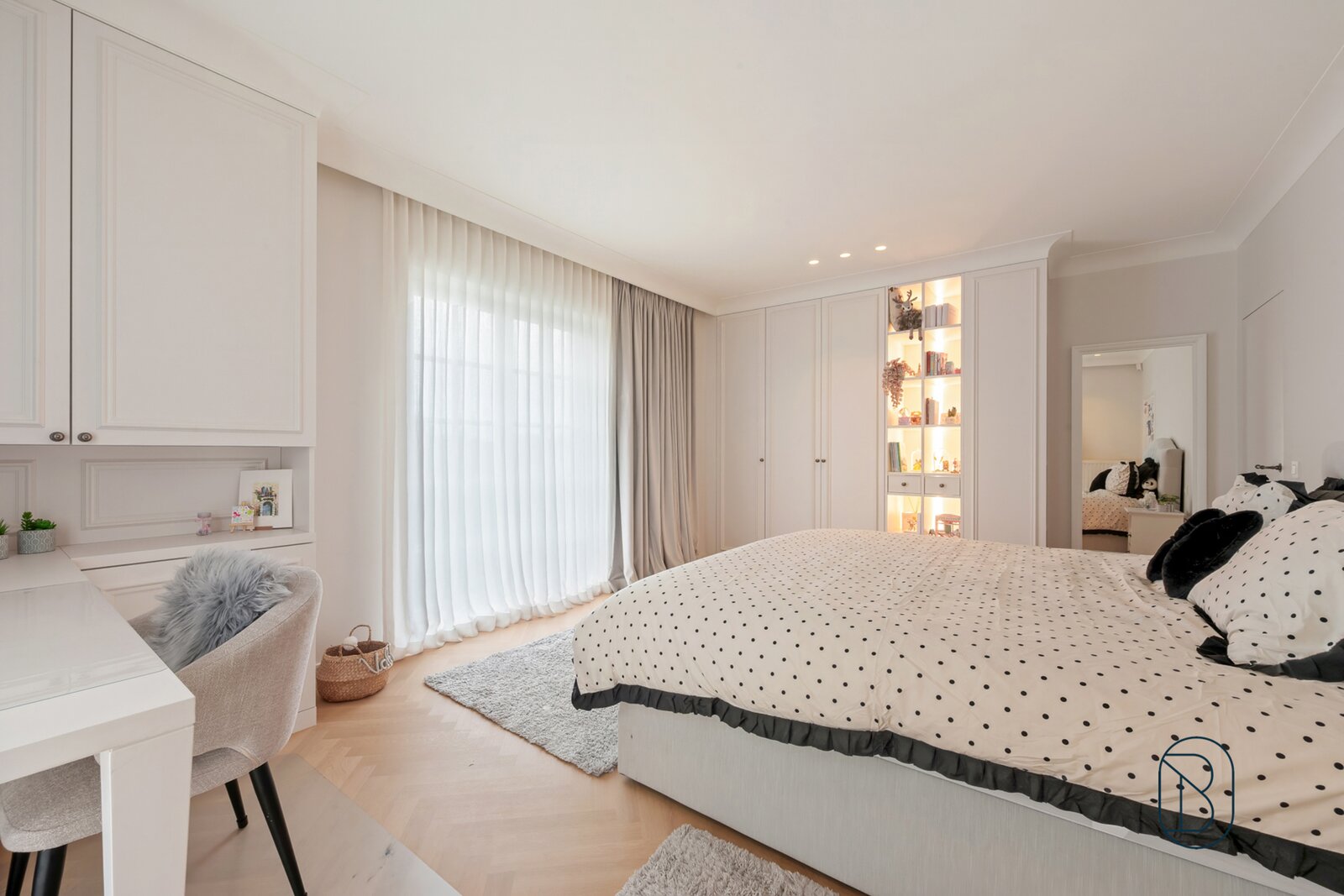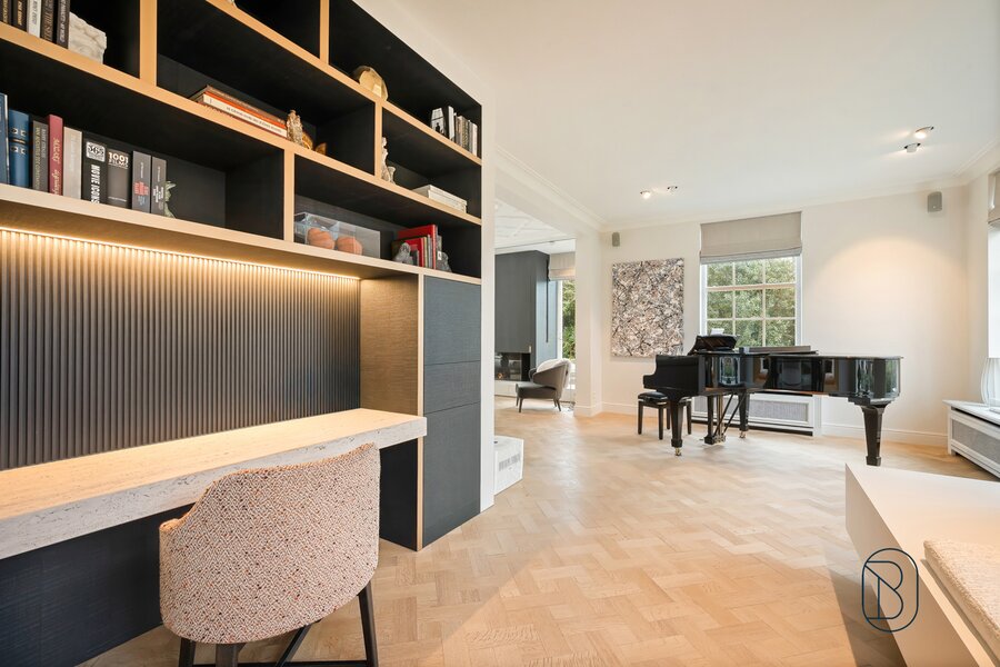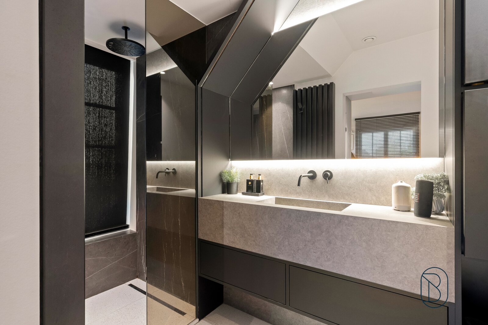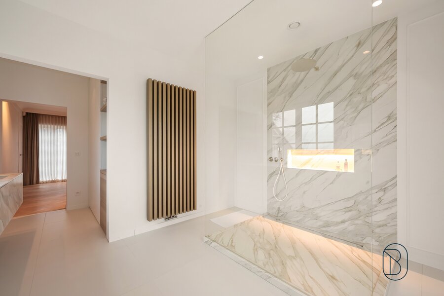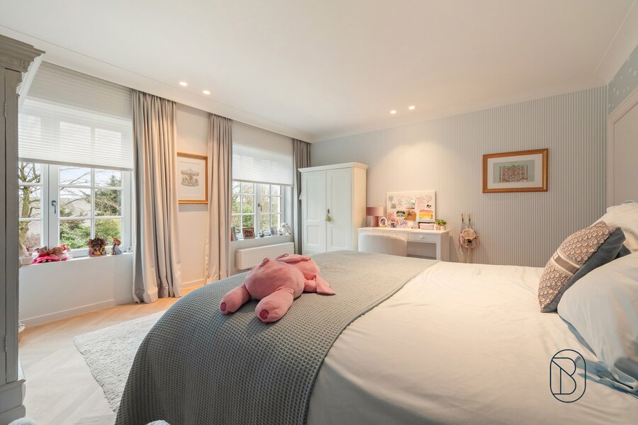 INDELING: inkom en prachtige traphal (marmeren vloer, smeedijzeren trap), vestiaire, prachtig afgewerkt toilet, bureauhoek, grote lichtrijke leefruimte (open haard), prachtige leefkeuken (marmer), voorzien van alle toestellen en inbouwkasten, eetplaats, ontbijthoek, hall met extra vestiairekast, handige garage, berging, volledig onderkelderd (wijnkelder, wasplaats en berging, en extra mancave). Op het 1ste verdiep: prachtige overloop, 4 grote slaapkamers; 3 badkamers, dressing. Op het 2de verdiep; 2 extra polyvalente ruimtes (bureau/speelkamer/cinemazaal/extra slaapkamers) met douchevoorziening.