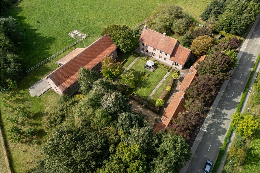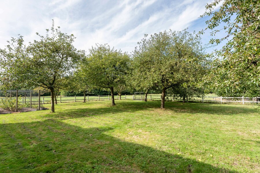De hoeve beschikt over een ruime garage met plaats voor meerdere wagens en extra bergruimte. Daarnaast is er een grote schuur met tal van mogelijkheden – van stockage tot het onderbrengen van dieren of landbouwmateriaal.
