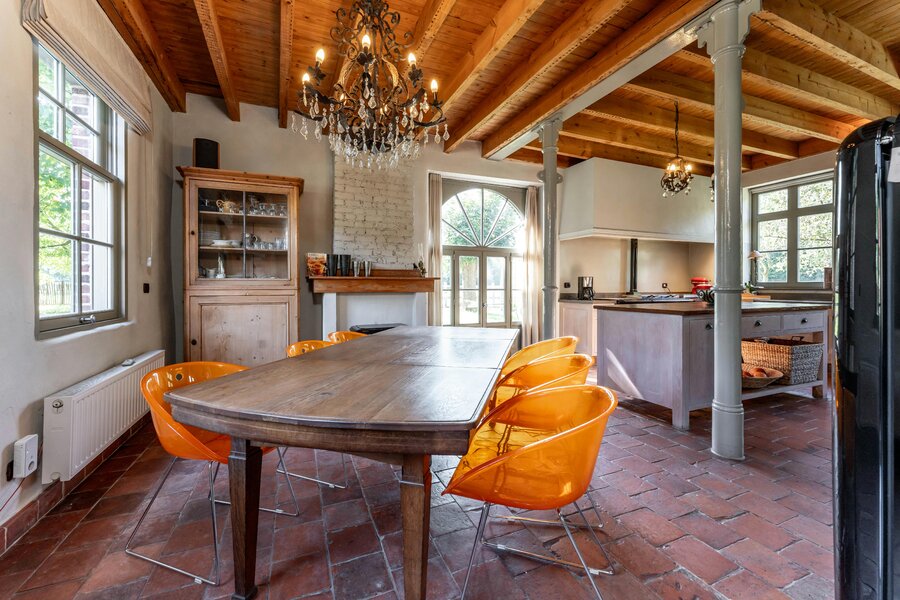 Het hoofdgebouw werd met de grootste zorg onderhouden en ademt karakter en warmte uit. Met een royale bewoonbare oppervlakte van 452 m² is er aan ruimte geen gebrek. De indeling is functioneel en doordacht, met een zalige leefkeuken, meerdere leefruimtes, slaapkamers en voorzieningen die inspelen op het hedendaags wooncomfort.