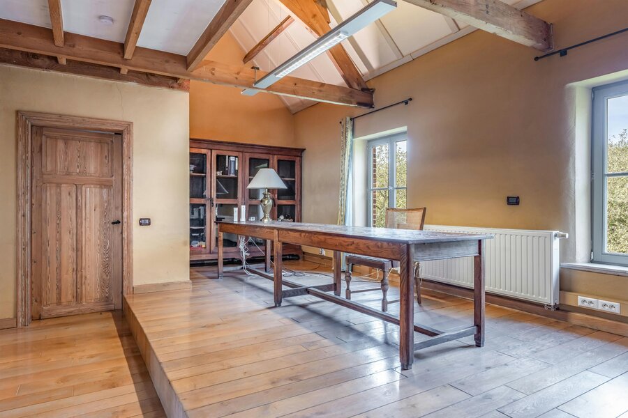 Een van de troeven van deze eigendom is een charmant zaaltje, dat momenteel ingericht is als feestzaal. Ideaal voor een familiebijeenkomst, hobbyactiviteiten of zelfs als atelier of praktijkruimte. Dankzij de aparte toegang blijft de privacy van het woonhuis volledig behouden.