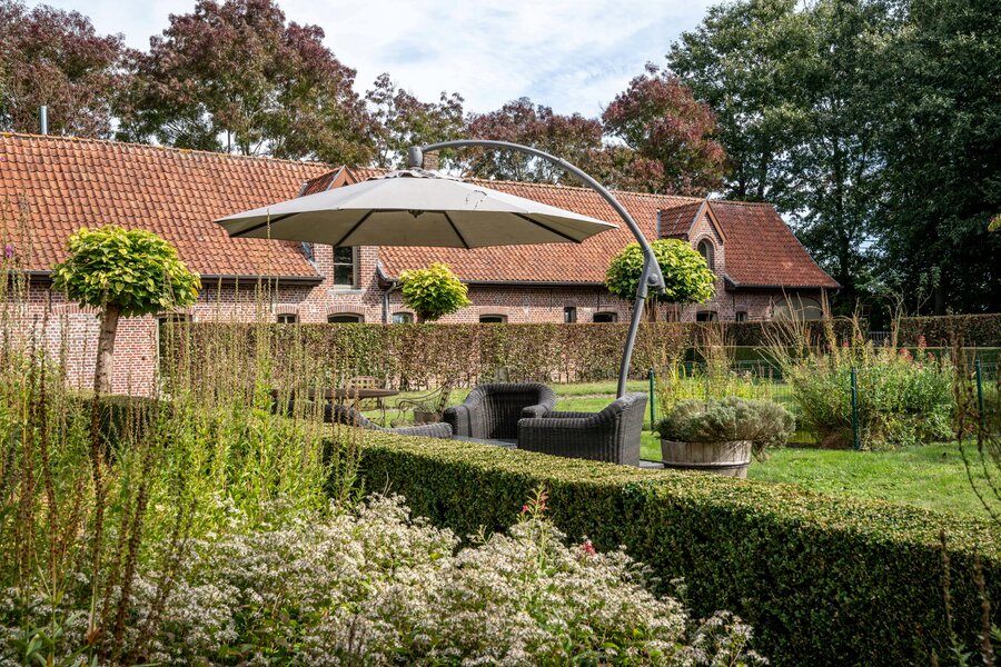 Rondom de woning strekt zich een prachtig domein uit met aangelegde zones, terrassen en vooral veel open ruimte. De weides zijn ideaal voor het houden van dieren.