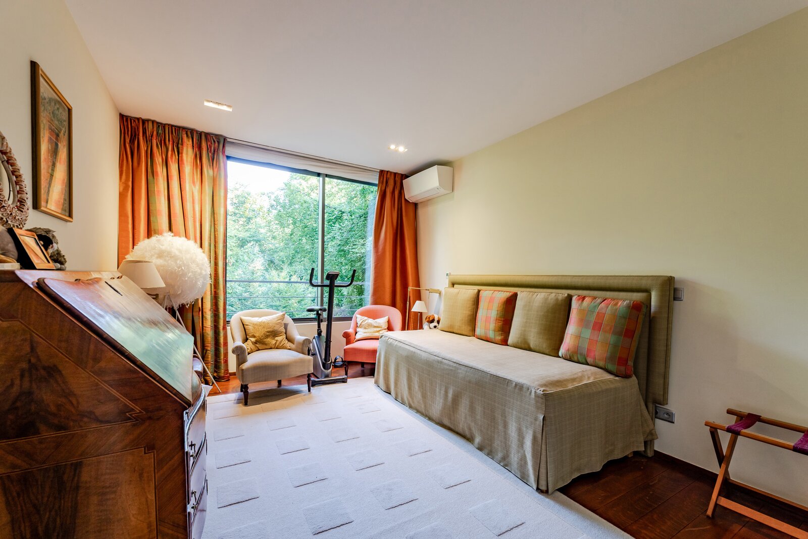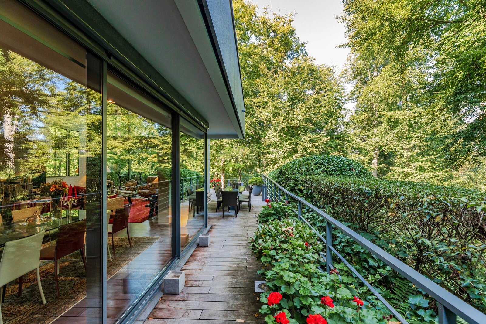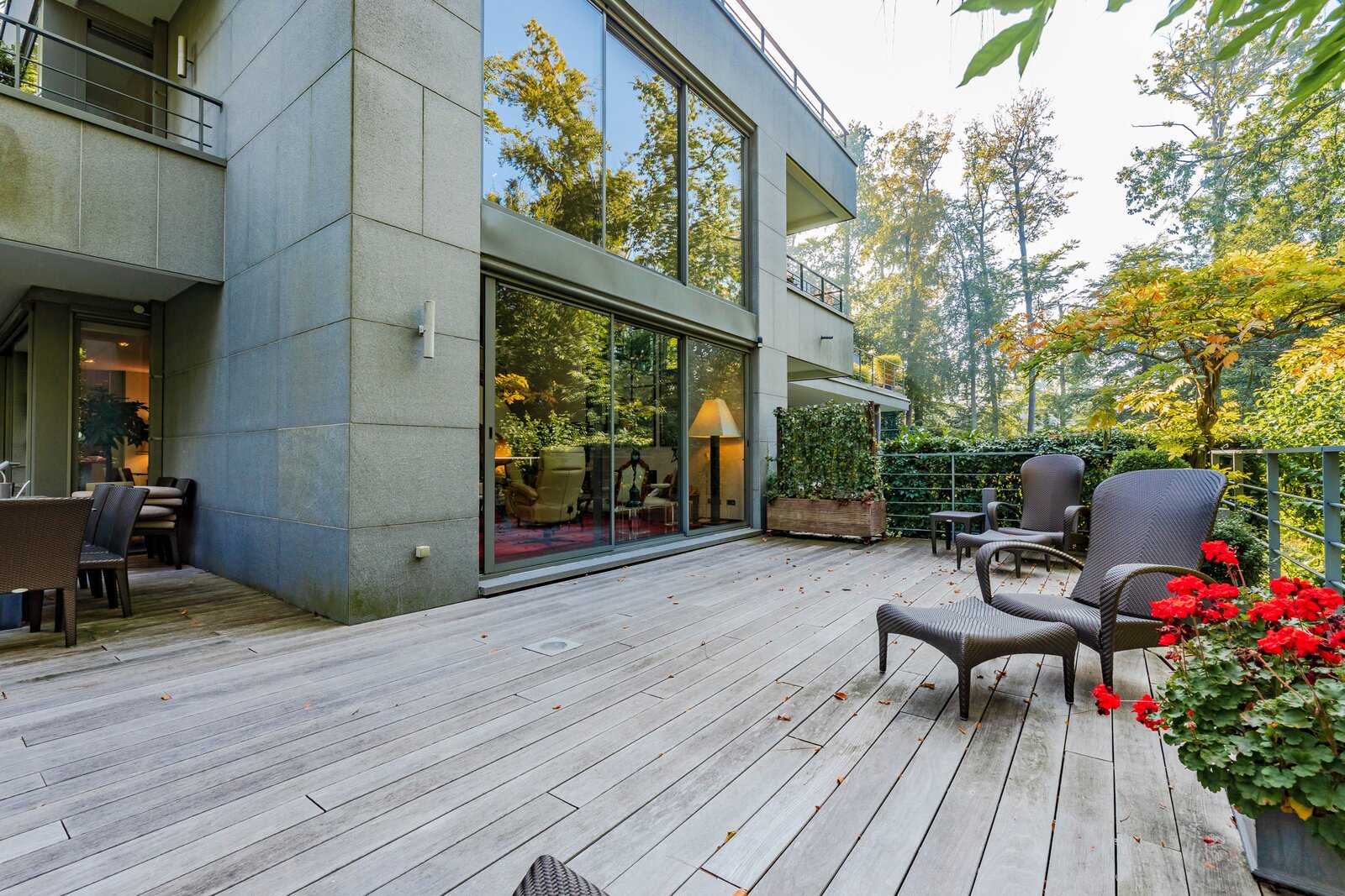 In het geklasseerde domein van La Hêtraie, een prachtig park met bomen, heeft deze schitterende duplex (gelijkvloers + 1e verdieping), ontworpen in 2002 door architect Marc Corbiau, een bewoonbare oppervlakte van ± 230 m² en beschikt over terrassen met een totale oppervlakte van ± 100 m².