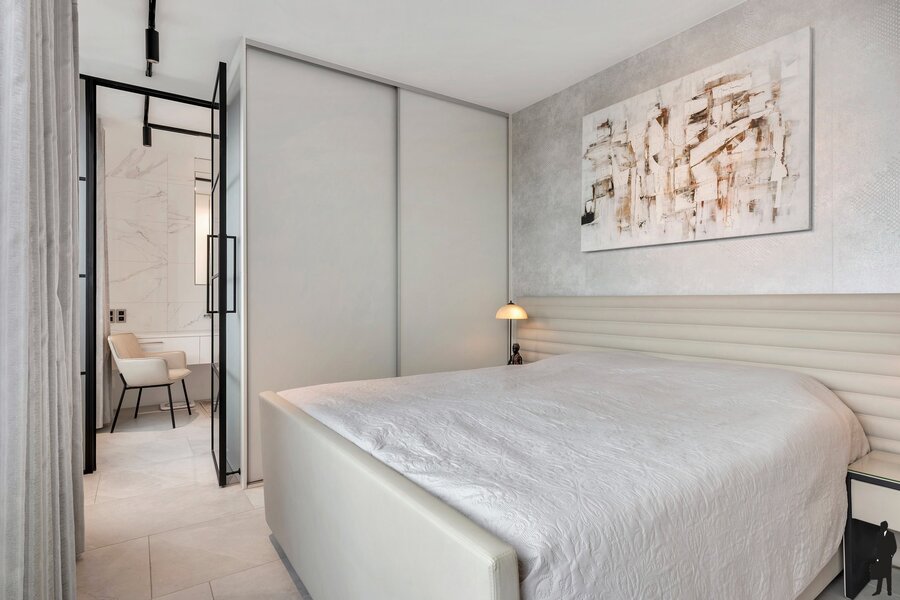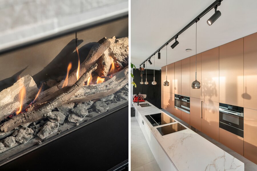 De lichtrijke leefruimte is voorzien van royale raampartijen, een sfeervolle gashaard, ingemaakte kasten en elektrische screens, volledig bedienbaar via een geavanceerd domoticasysteem dat ook de verlichting aanstuurt. Het appartement beschikt bovendien over comfortabele vloerverwarming, wat bijdraagt aan het luxueuze woongevoel. Elke slaapkamer is uitgerust met maatwerk kasten en een stijlvolle badkamer, wat de penthouse ideaal maakt voor wie op zoek is naar privacy en comfort in een exclusieve setting.