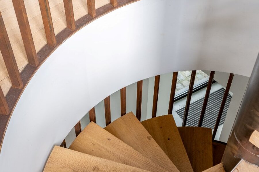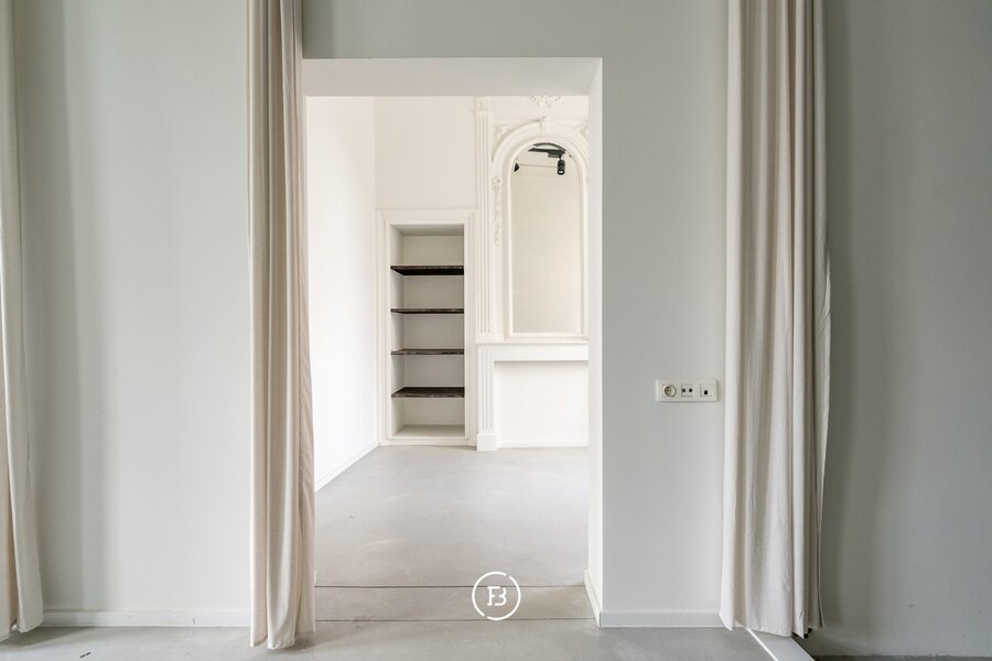 Op de eerste verdieping vinden we meerdere open leefruimtes, een keuken en een badkamer. Het tweede verdiep is momenteel casco en biedt samen met het eerste verdiep de mogelijkheid om een duplexappartement te creëren, perfect voor wie wonen en werken wil combineren.