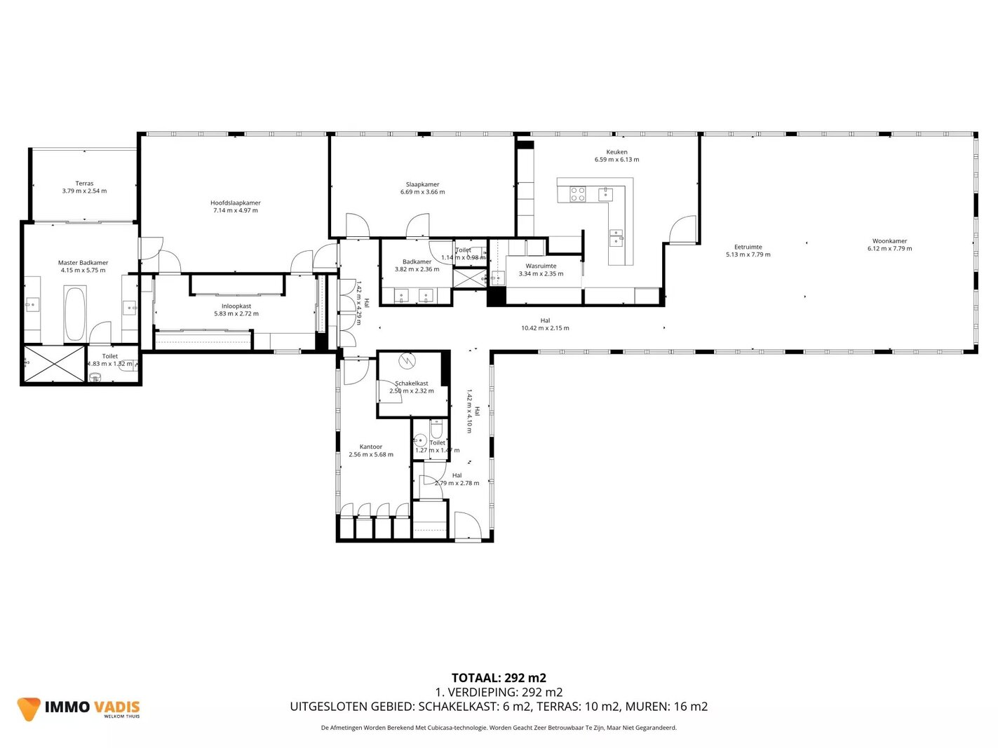 - Bureau/slaapkamer (13 m²) met inbouwkasten