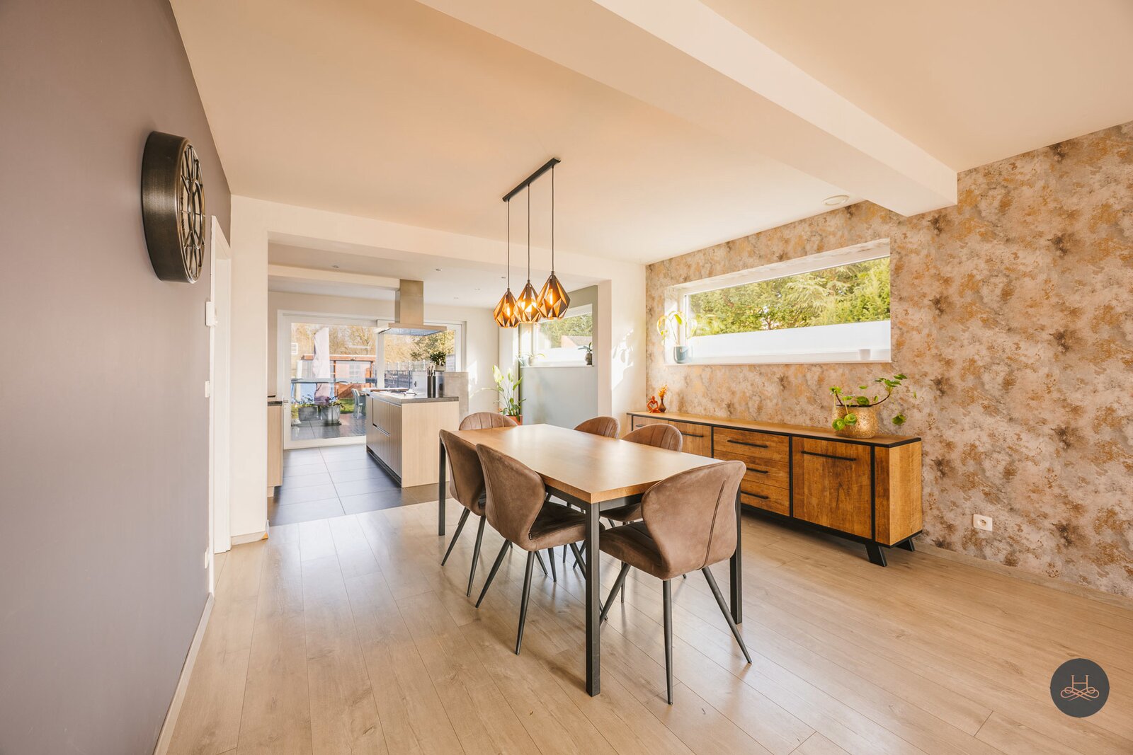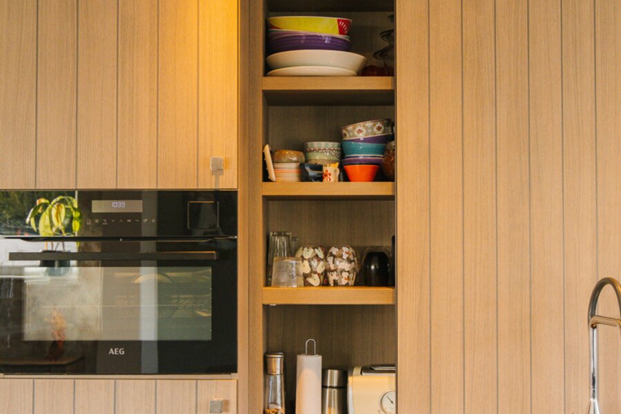 De prachtige open keuken vormt het hart van de leefruimte en is, samen met de stijlvolle badkamer, volledig vernieuwd met hoogwaardige materialen.